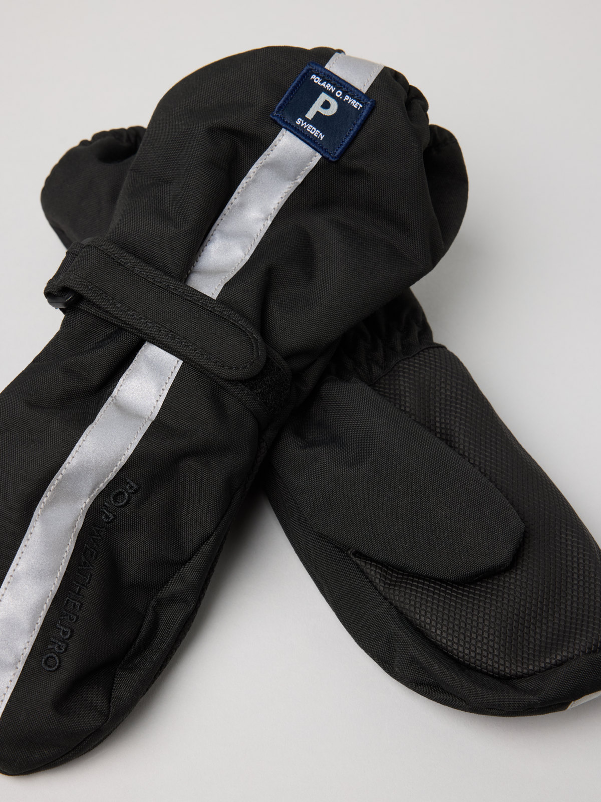Hanskoissa on pehmeä fleecevuori, ja ne on muotoiltu hyvän liikkuvuuden varmistamiseksi. Pitkä varsi on erityisen leveä, mikä helpottaa hanskojen pukemista. Säädettävä remmi ranteessa takaa hyvän istuvuuden ja pitää hanskat paikallaan. Hanskojen päällä on näkyvät heijastinnauhat ja kämmenpuolella pitävä kangas.