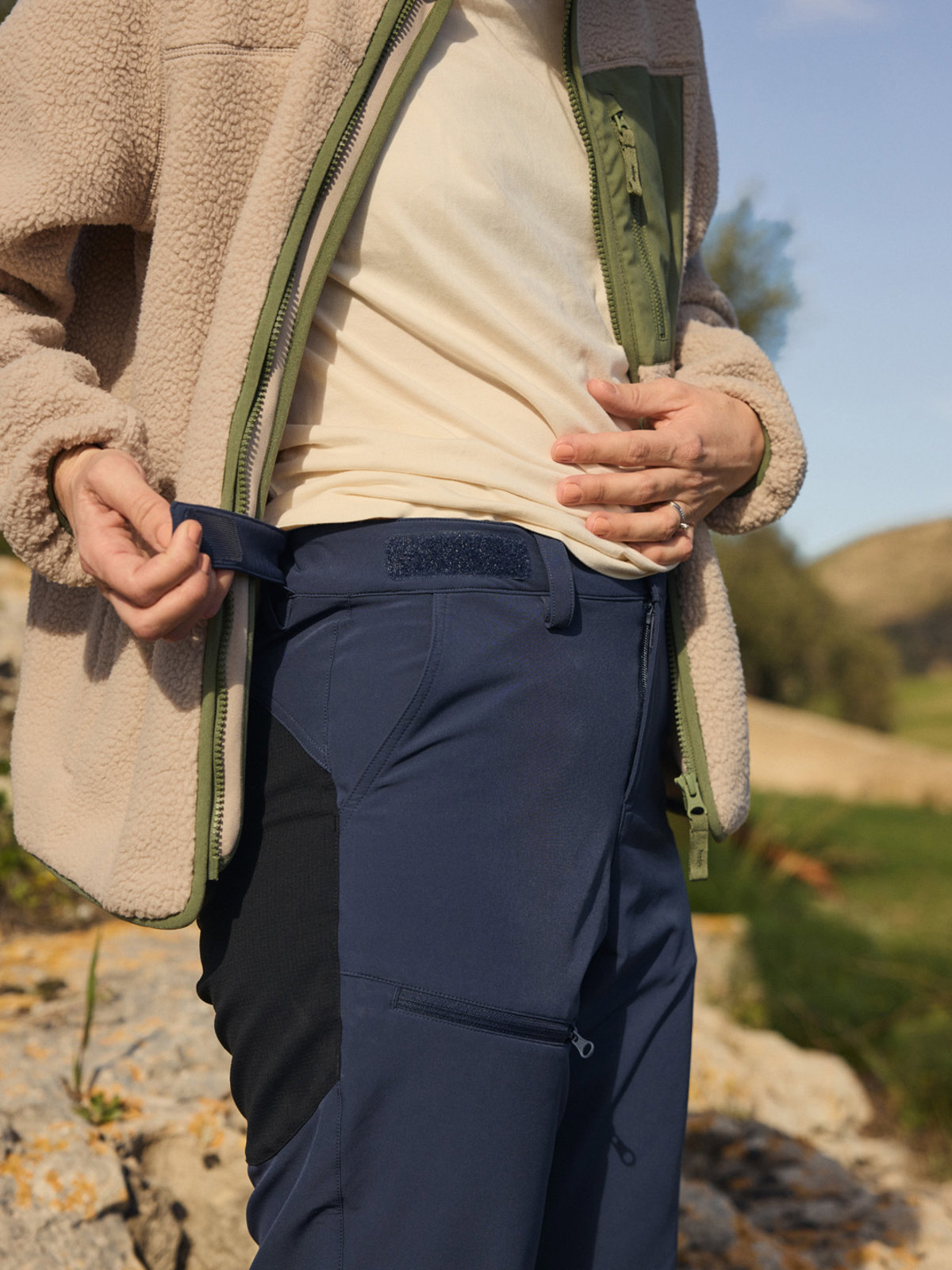 Uutuus! Kestävät ulkoiluhousut neljään suuntaan joustavaa stretchmateriaalia – aikuisten koot! Polvissa ja takapuolessa on vahvikekangas, joten housut kestävät leikkejä karkeimmillakin pinnoilla. Materiaali hengittää hyvin ja siirtää liiallisen lämmön ja kosteuden ulos.