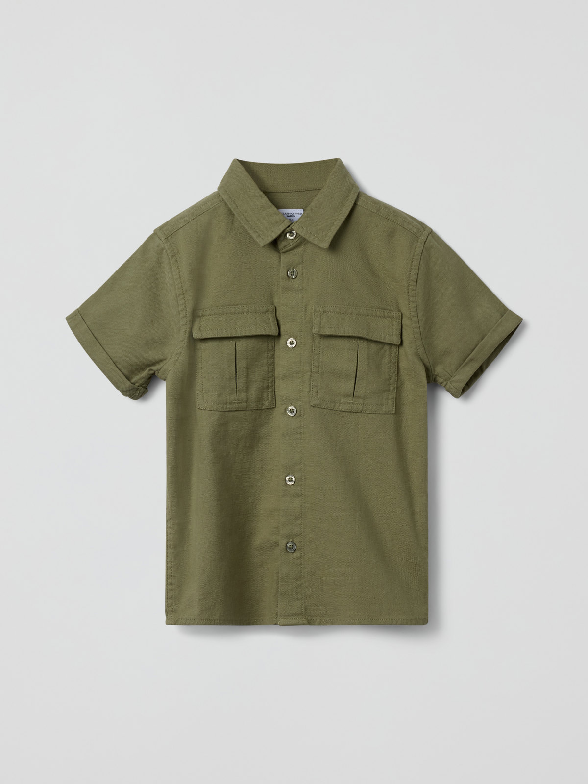 Pehmeä cargopaita 100 % luomupuuvillaa – täydellinen ihaniin kesäseikkailuihin! Paidassa on nappikiinnitys, pehmeä kaulus ja kaksi isoa rintataskua.