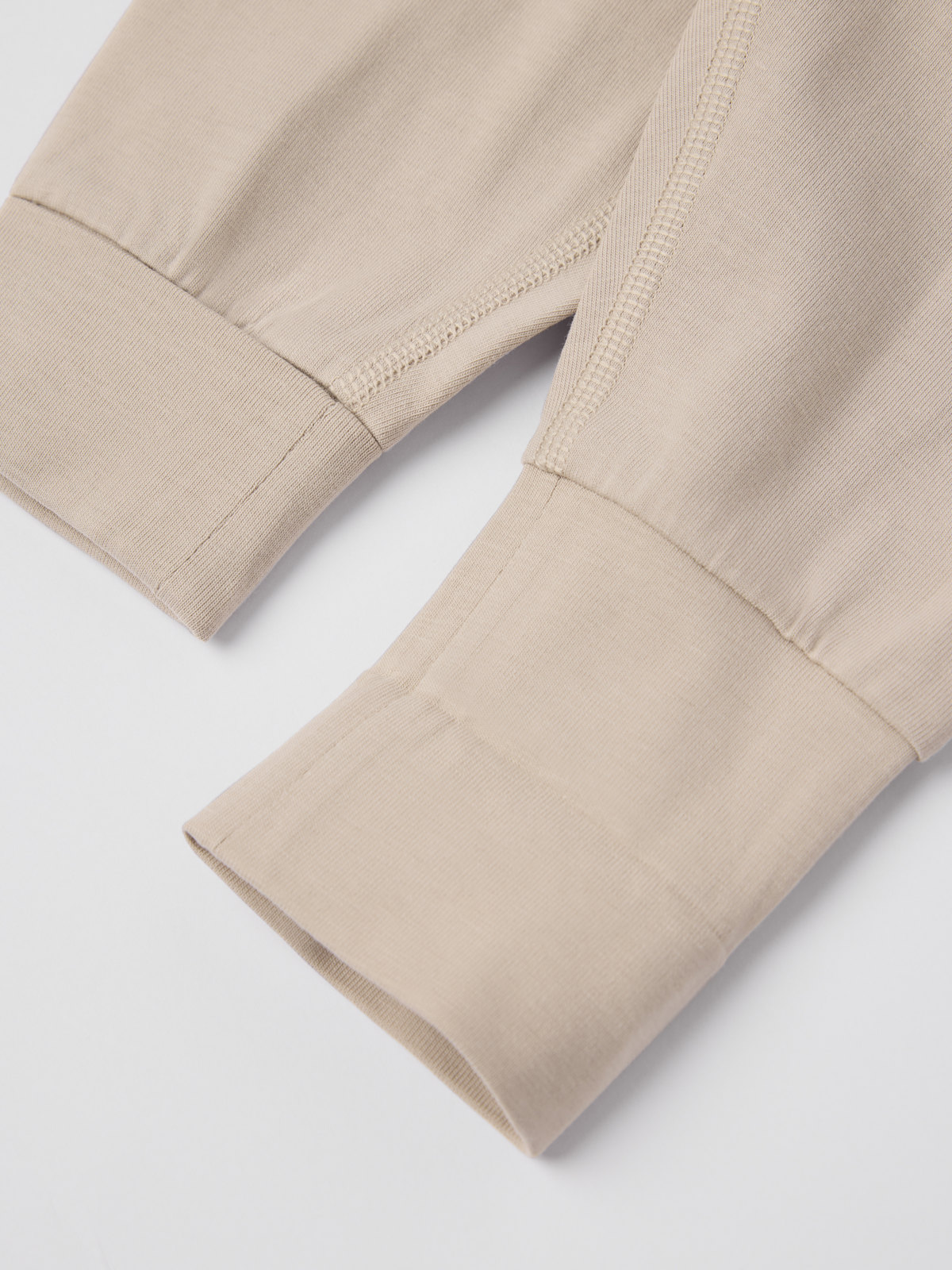 Pehmeät ja kauniit housut, jotka kasvavat lapsen mukana. Vyötäröllä ja lahkeensuissa erityispitkät resorit, jotka voi taittaa ylös tai alas. Housut on valmistettu 100 % luomupuuvillasta. Erittäin pehmeät saumat, jotka eivät hankaa herkkää ihoa.