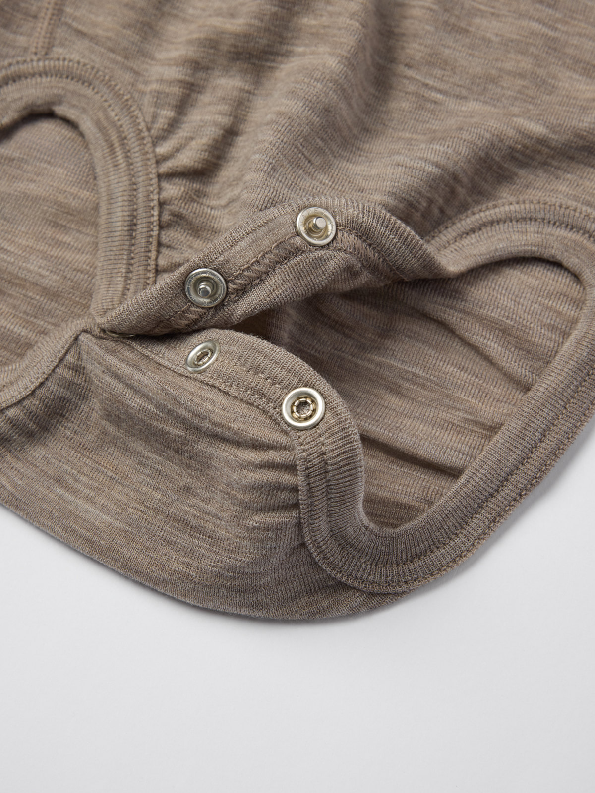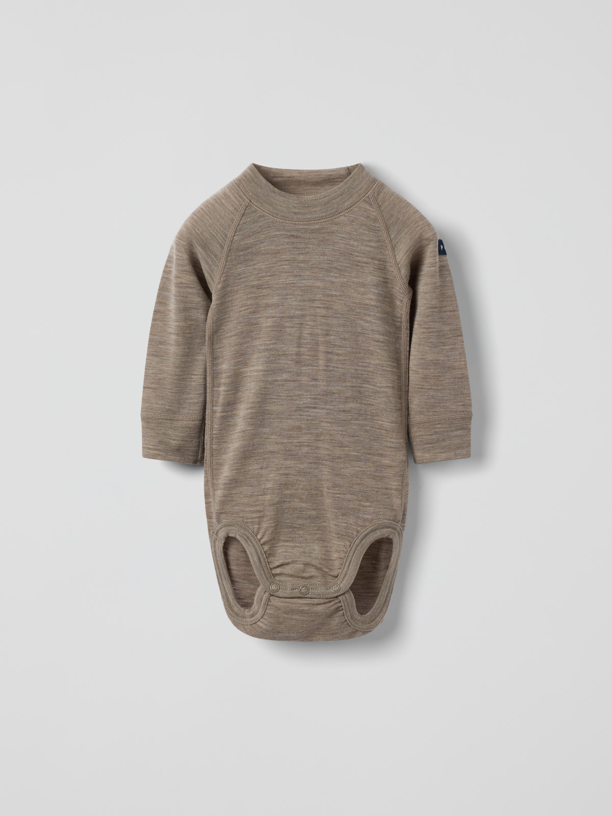 Lämmittävästä merinovillasta valmistettu vauvan pitkähihainen body. Täydellinen aluskerrasto toppahaalarin alle! Merinovilla lämmittää myös märkänä ja auttaa säätelemään kehon lämpötilaa. Bodyssa on erityisen pehmeät hankaamattomat saumat. Nepparikiinnitys haarassa helpottaa vaatteiden ja vaippojen vaihtoa.