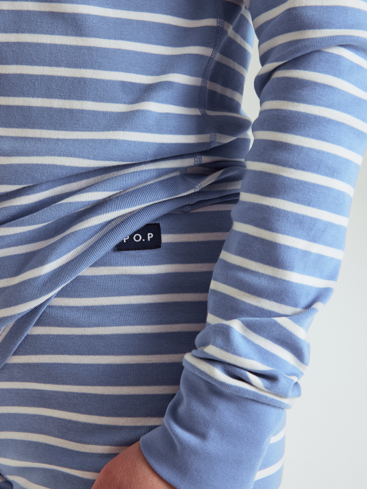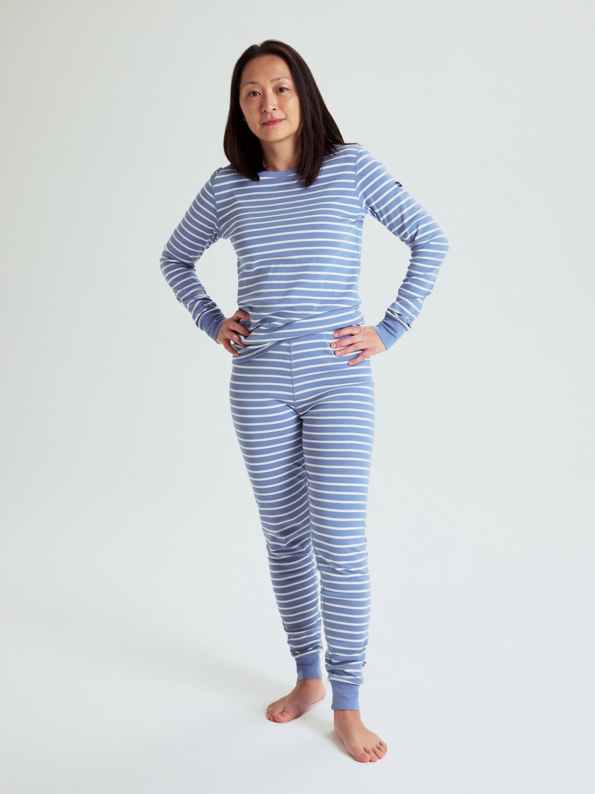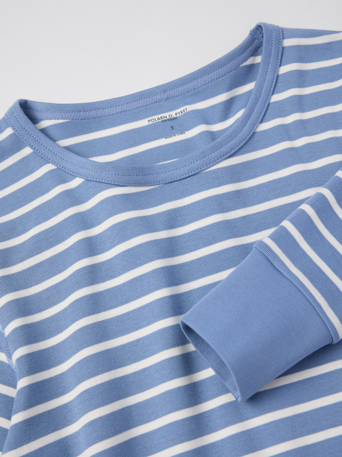 Aikuisten paita- ja housusetti klassisella raitakuosillamme. Paidassa on pehmeä ribbiresori pääntiessä ja hihansuissa. Housuissa on joustava vyötärö ja pehmeä ribbiresori lahkeensuissa.