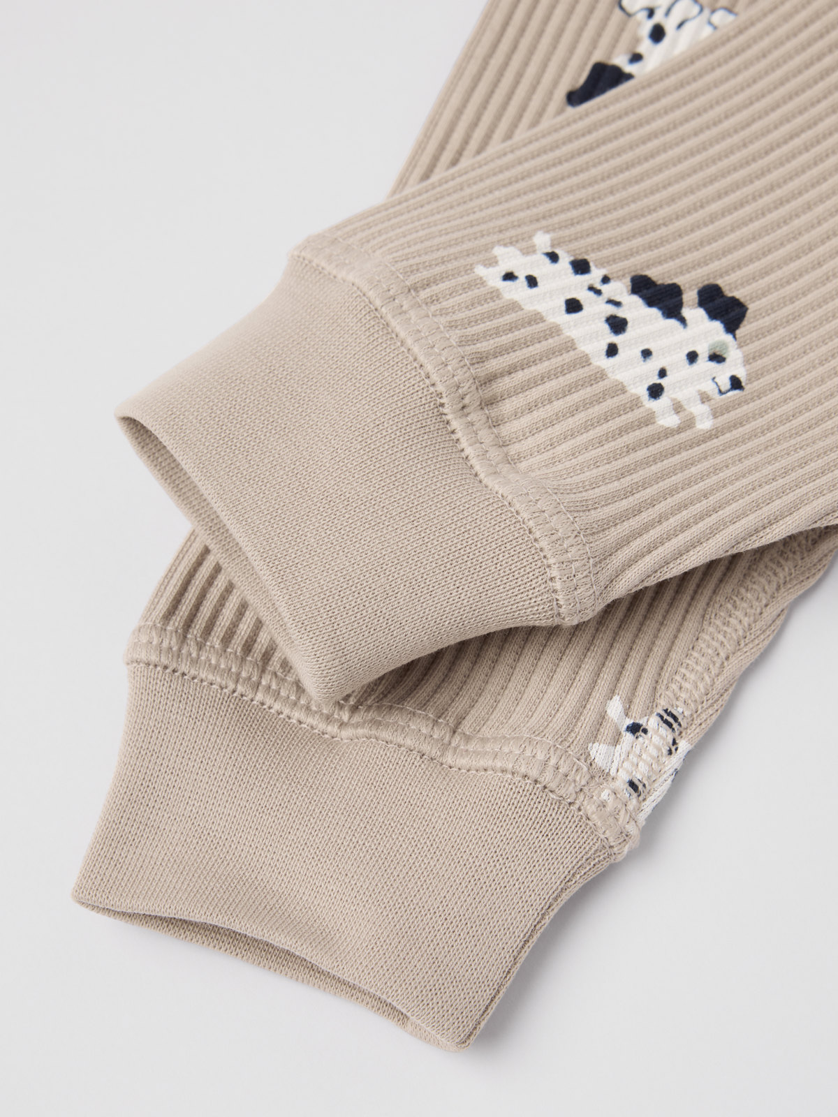 Ribbihousut pehmeää luomupuuvillaa. Kuvioitu kokonaan karhukuviolla. Housuissa on erittäin pehmeät ja litteät saumat, jotka eivät hankaa herkkää ihoa vasten. Pehmeät resorit lahkeensuissa ja reikäkuminauhalla säädettävä vyötärö.