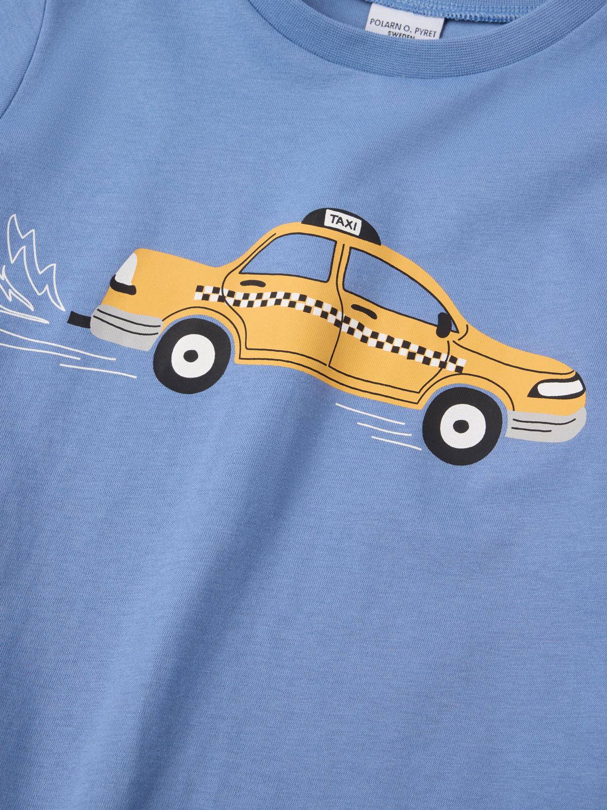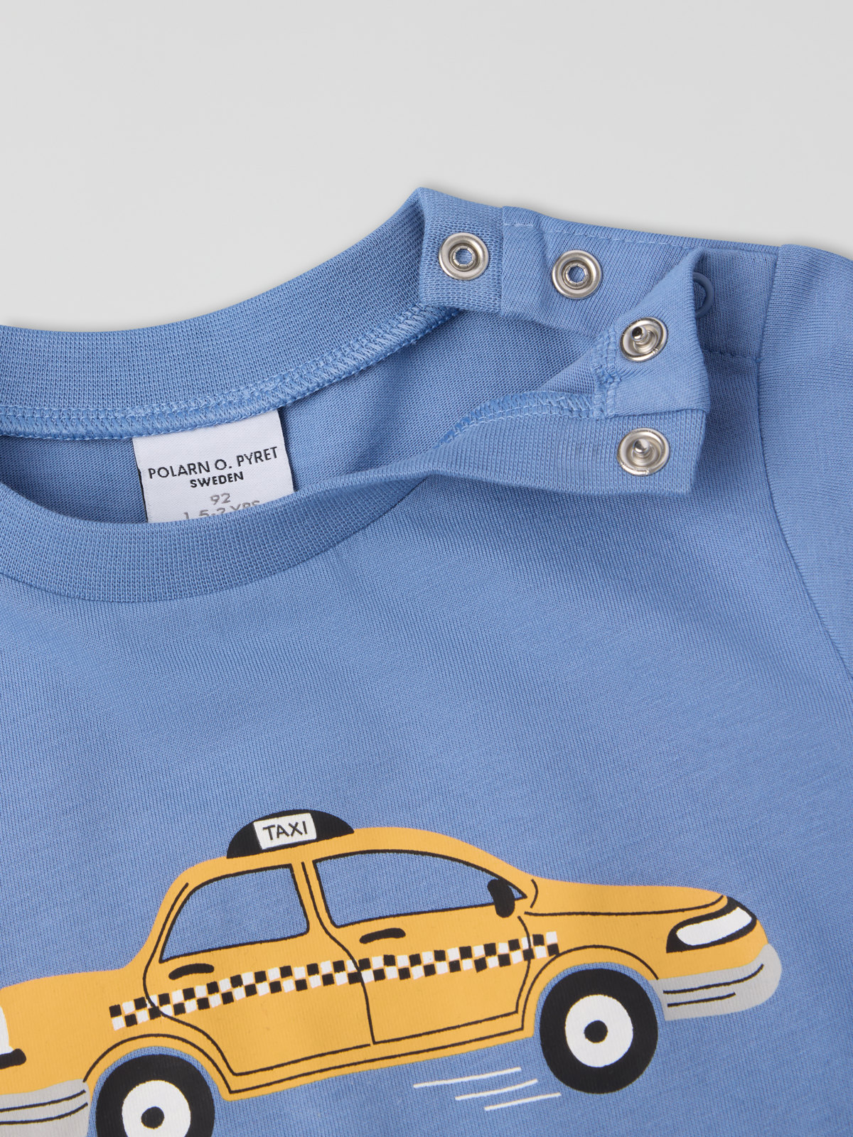 T-paita 100 % luomupuuvillaa. Rinnassa hauska kuvio. Täydellinen kaikkiin tilanteisiin! Saatavilla useita värejä ja kuvioita, jotka sopivat hyvin yhteen koko malliston kanssa.