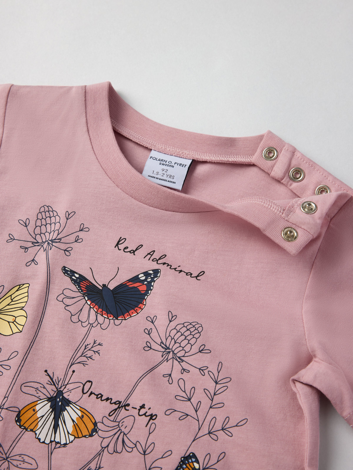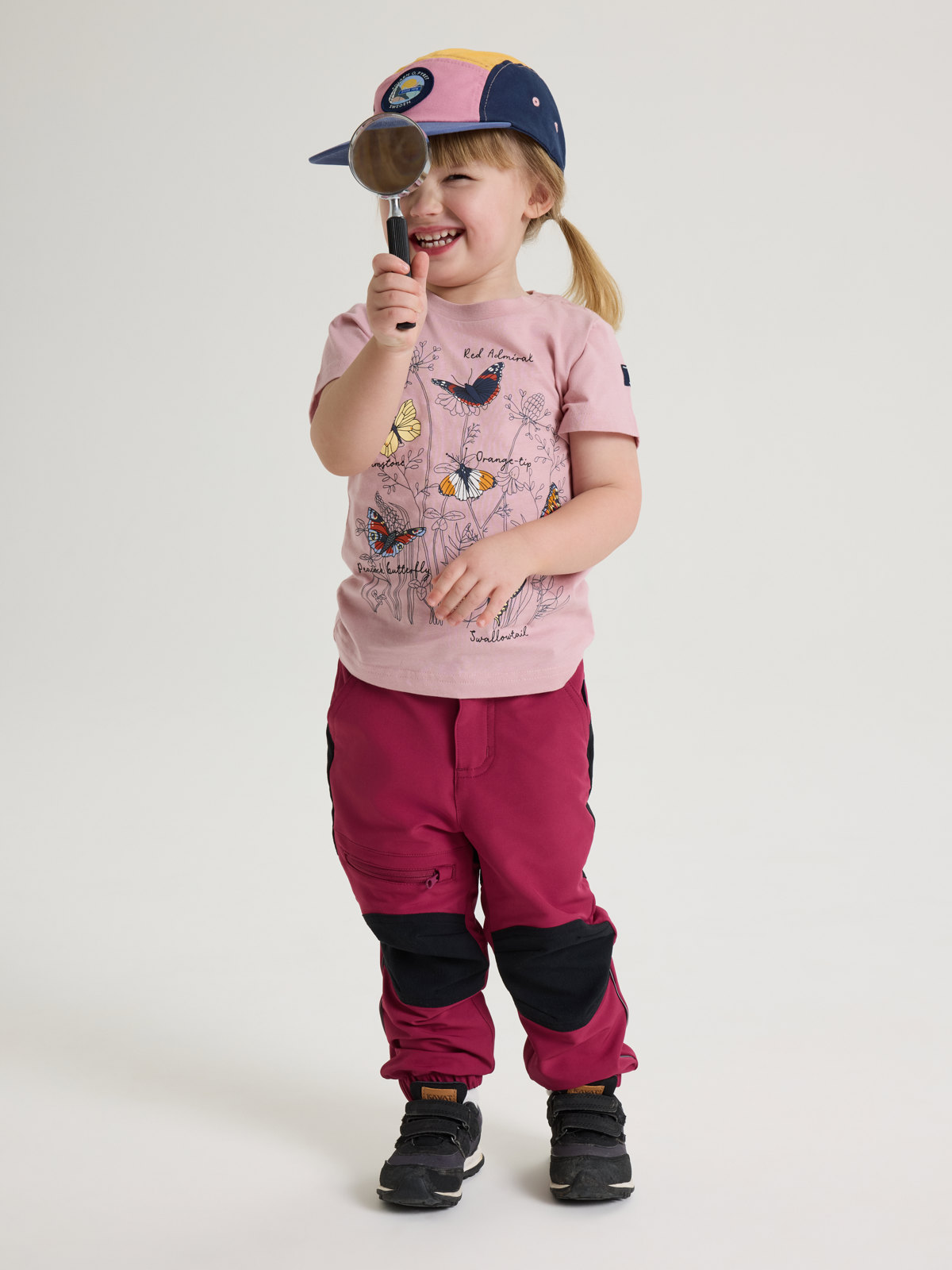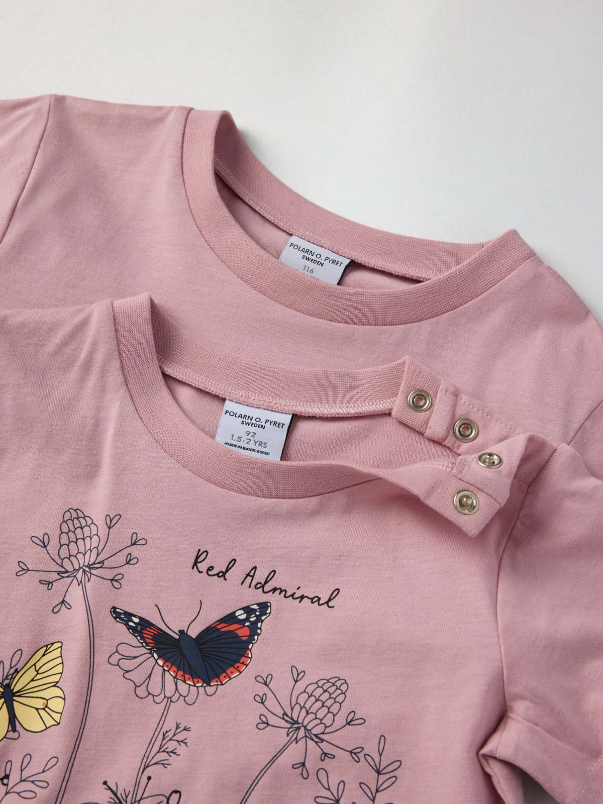 T-paita 100 % luomupuuvillaa. Rinnassa hauska kuvio. Täydellinen kaikkiin tilanteisiin! Saatavilla useita värejä ja kuvioita, jotka sopivat hyvin yhteen koko malliston kanssa.