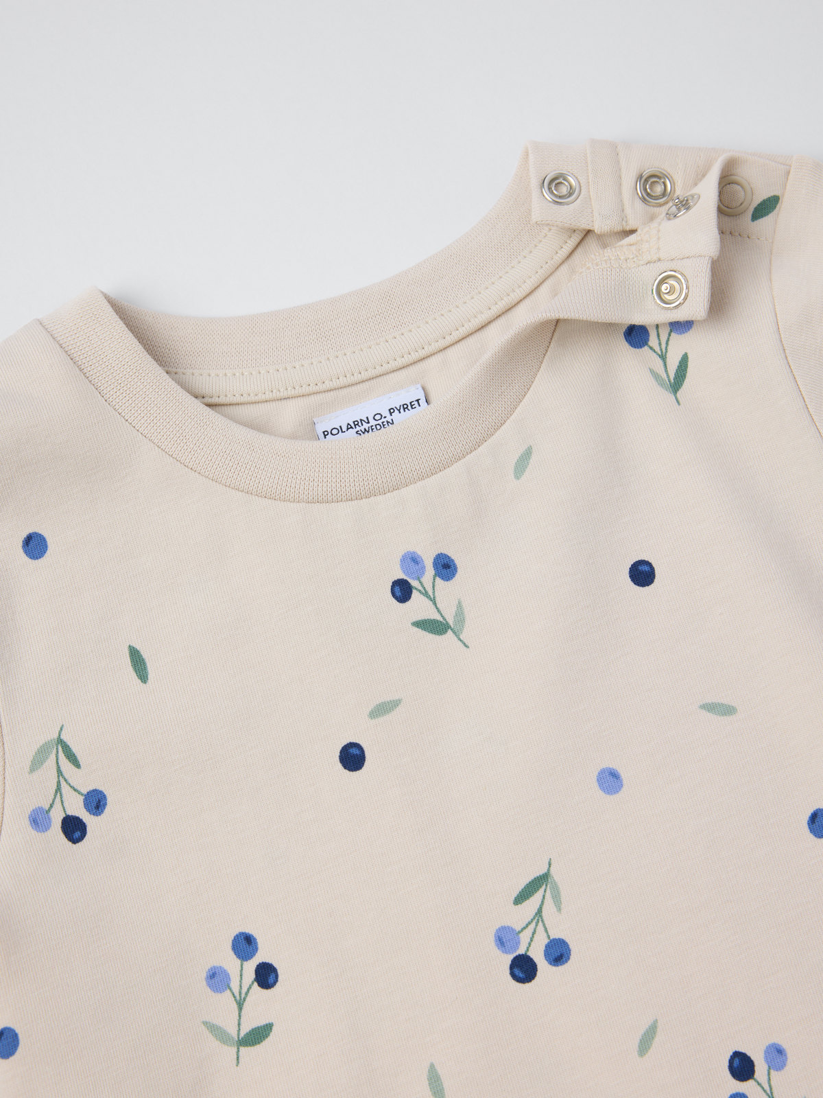 T-paita pehmeää luomupuuvillaa. Kuvioitu kokonaan kukkakuviolla – pitkäikäinen suosikki, joka sopii kaikkiin tilanteisiin!