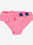 Vauvan vaaleanpunaiset uimahousut tähtiapplikoinneilla edessä ja koristeellisella röyhelöreunalla.