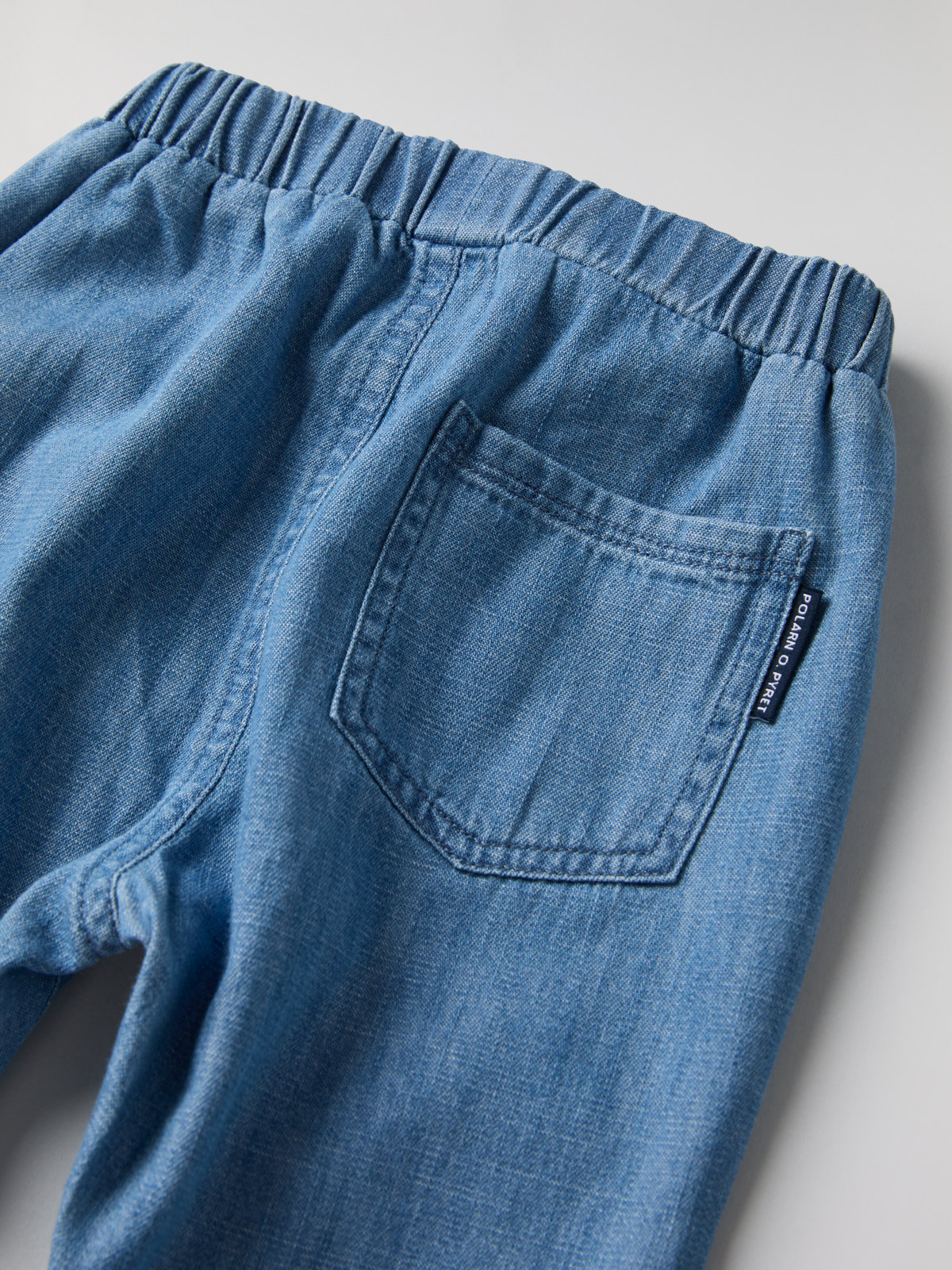 Vauvan ohuet farkut luomupuuvillaa – täydelliset helposti jalkaan vedettävät housut!