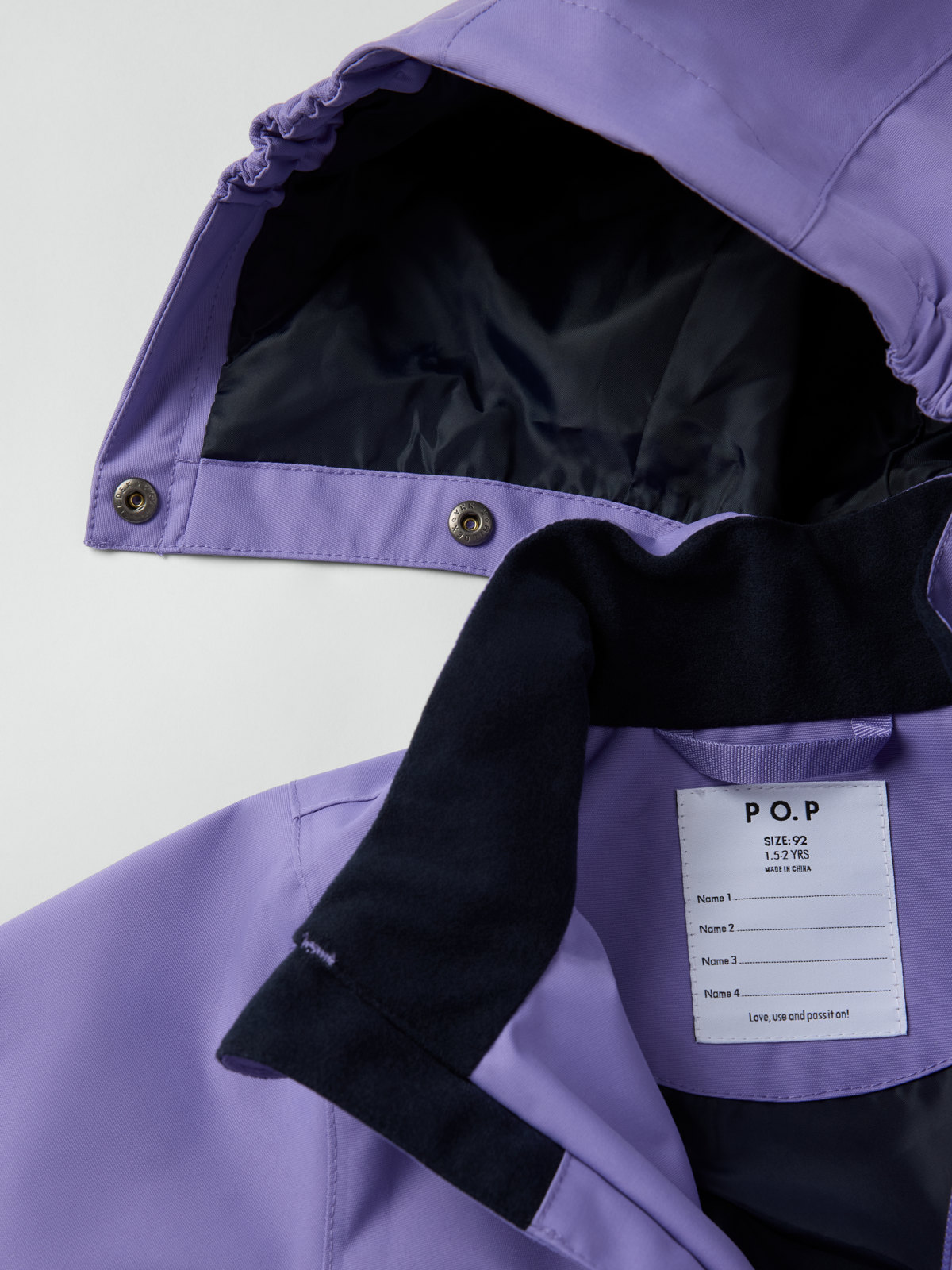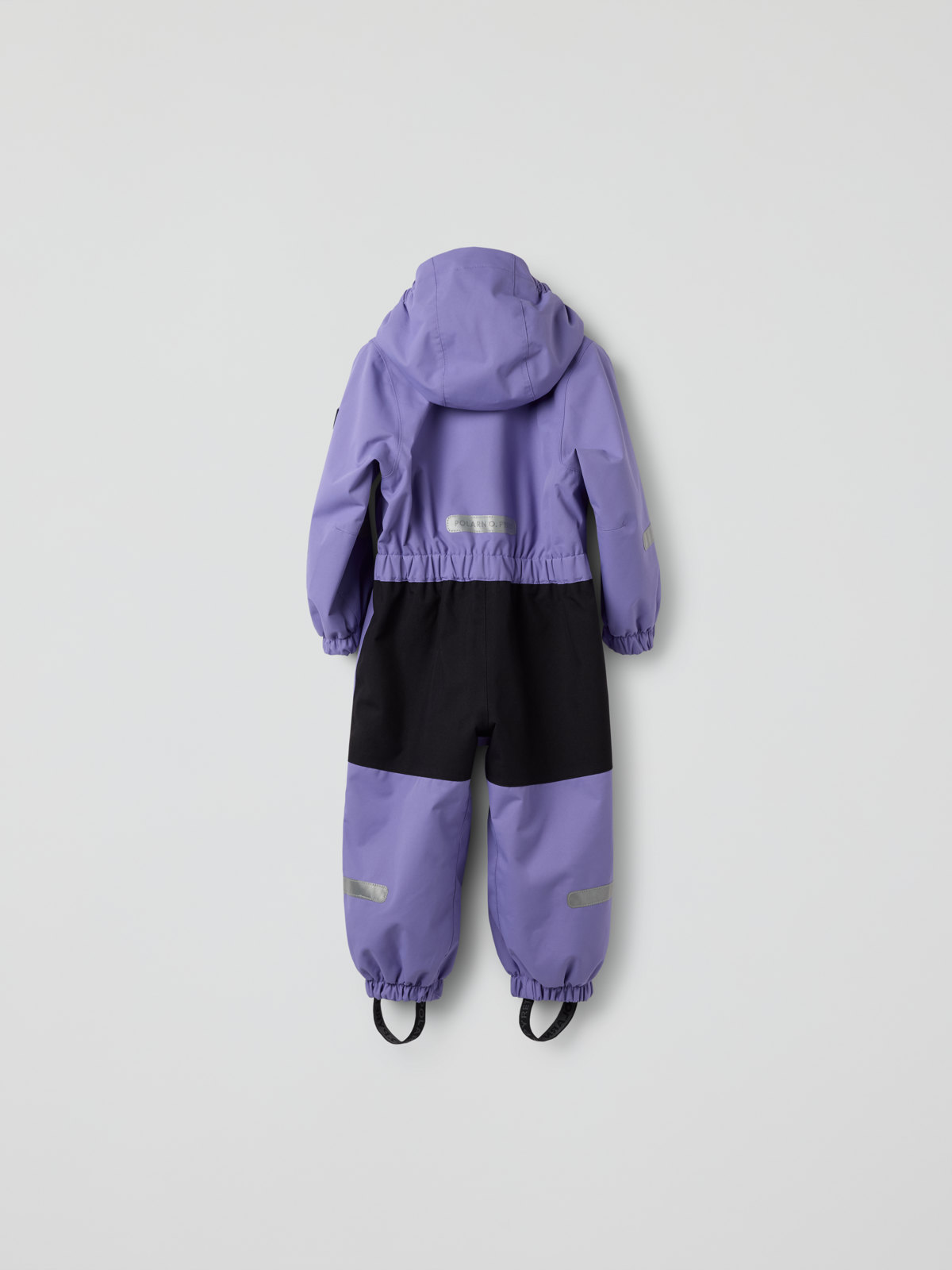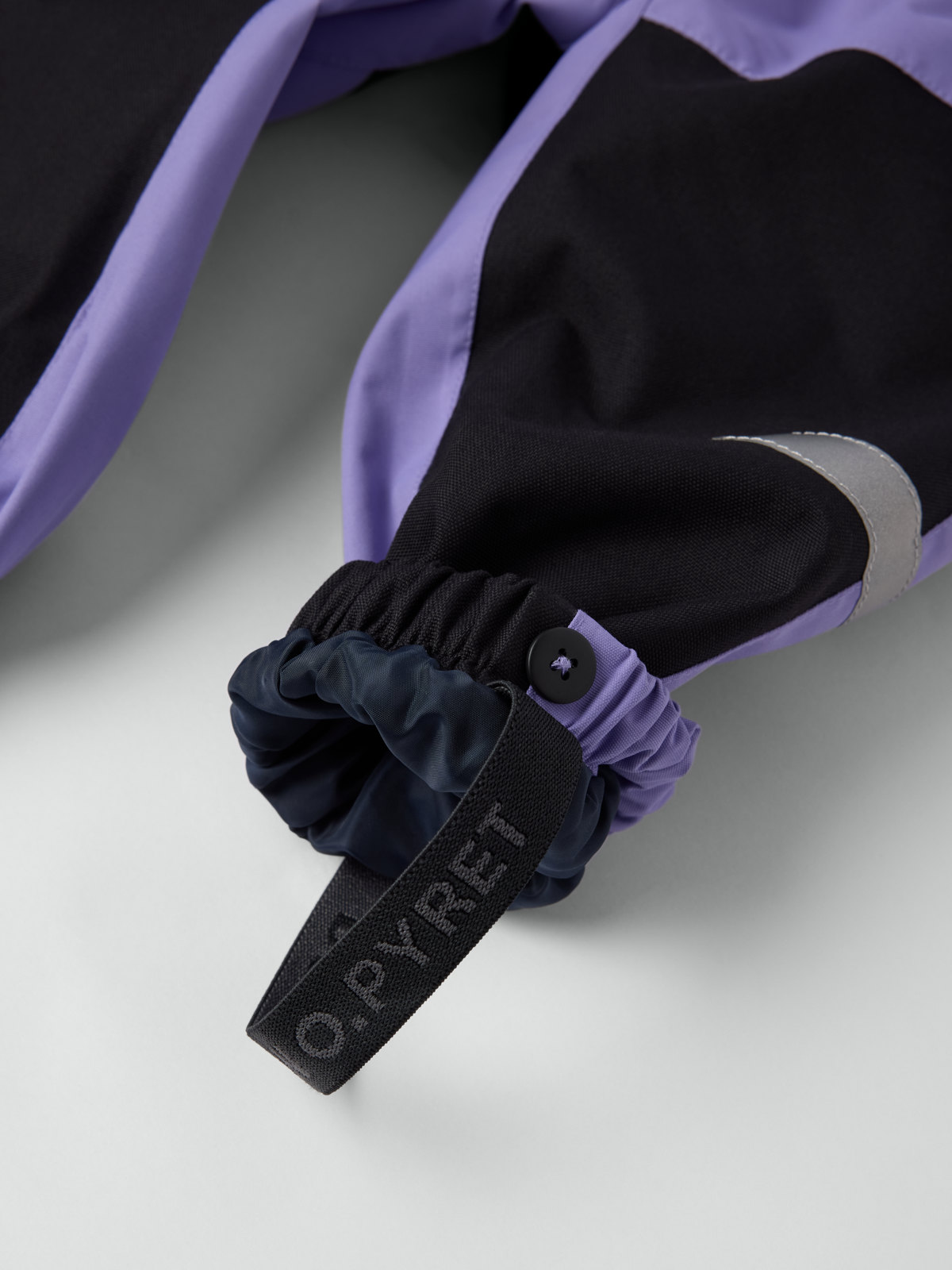 Vaate on valmistettu vedenpitävästä materiaalista, jonka vesipilariarvo on vähintään 10 000 mm – tämä tarkoittaa, että vaate suojaa sateelta ja lapsi voi ulkoilla myös vaikkapa kaatosateella.