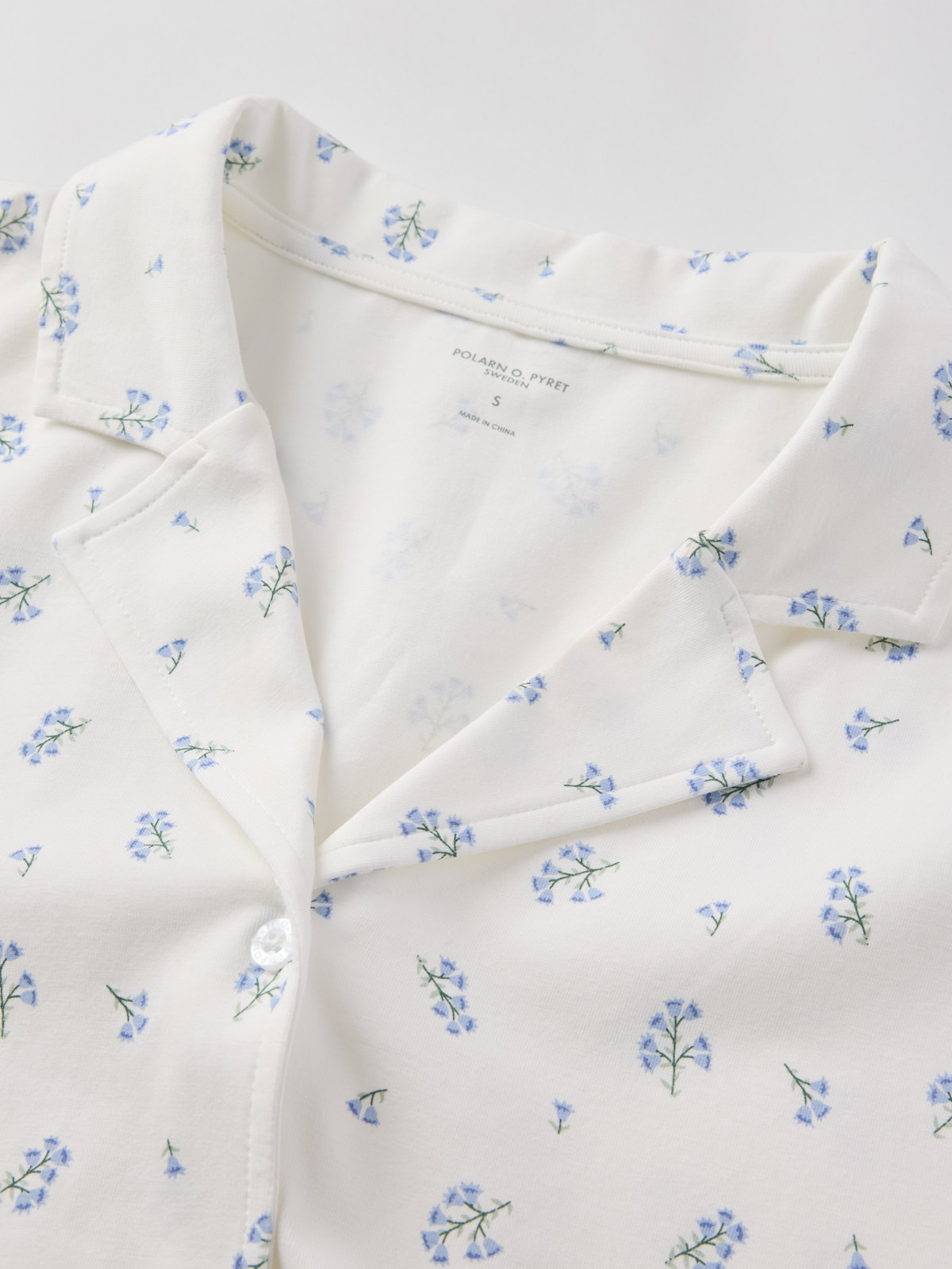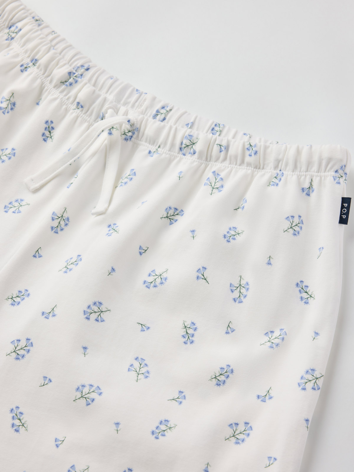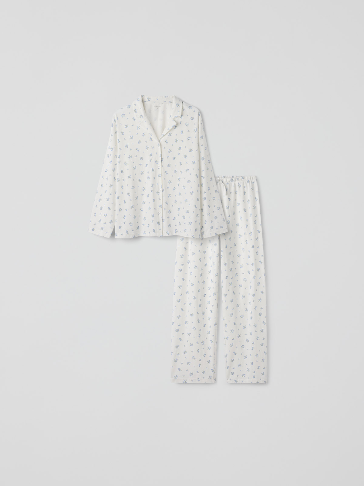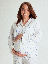 MAMA-puku pehmeää luomupuuvillatrikoota – mukava sekä nukkumiseen että oleiluun raskauden aikana ja vauvan syntymän jälkeen. Paidassa on pehmeä kaulus ja nappikiinnitys edessä. Housuissa on suorat lahkeet ja joustava vyötärönauha, joka asettuu mukavasti kasvavan vatsan alle. Vyötäröä voi säätää kiristysnauhalla.
