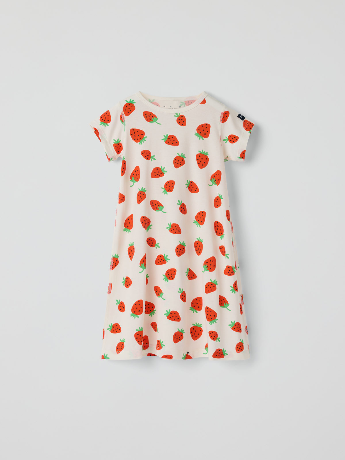 Lyhythihainen yöpaita kevyestä ja viileästä Tencel™ lyocell -trikoosta. Yöpaidassa on erityisen pehmeät, litteät saumat, jotka eivät hankaa, ja se on kauttaaltaan mansikkakuosinen.