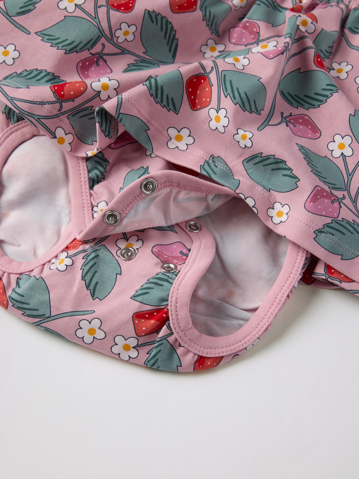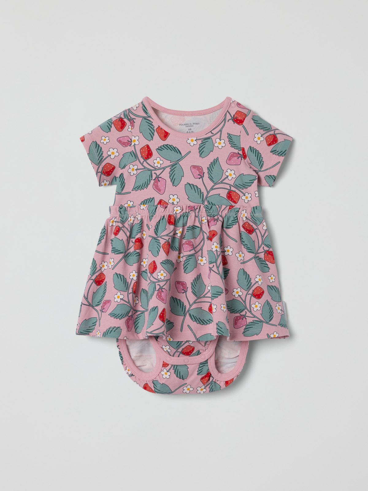 Lyhythihainen mekkobody pehmeää luomupuuvillaa perheen pienimmille – täydellinen sekä kotoiluun että juhliin! Mekkobodyn hameosassa on hieno brodeeraus. Piilonepparit toisella olkapäällä ja haarassa helpottavat pukemista.