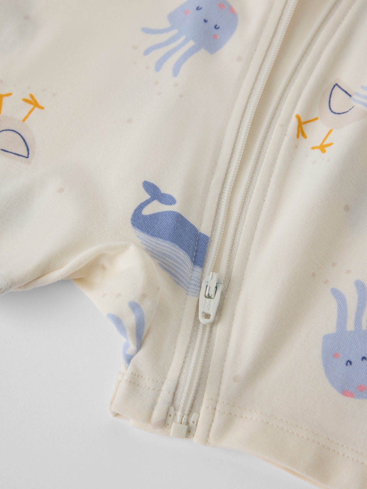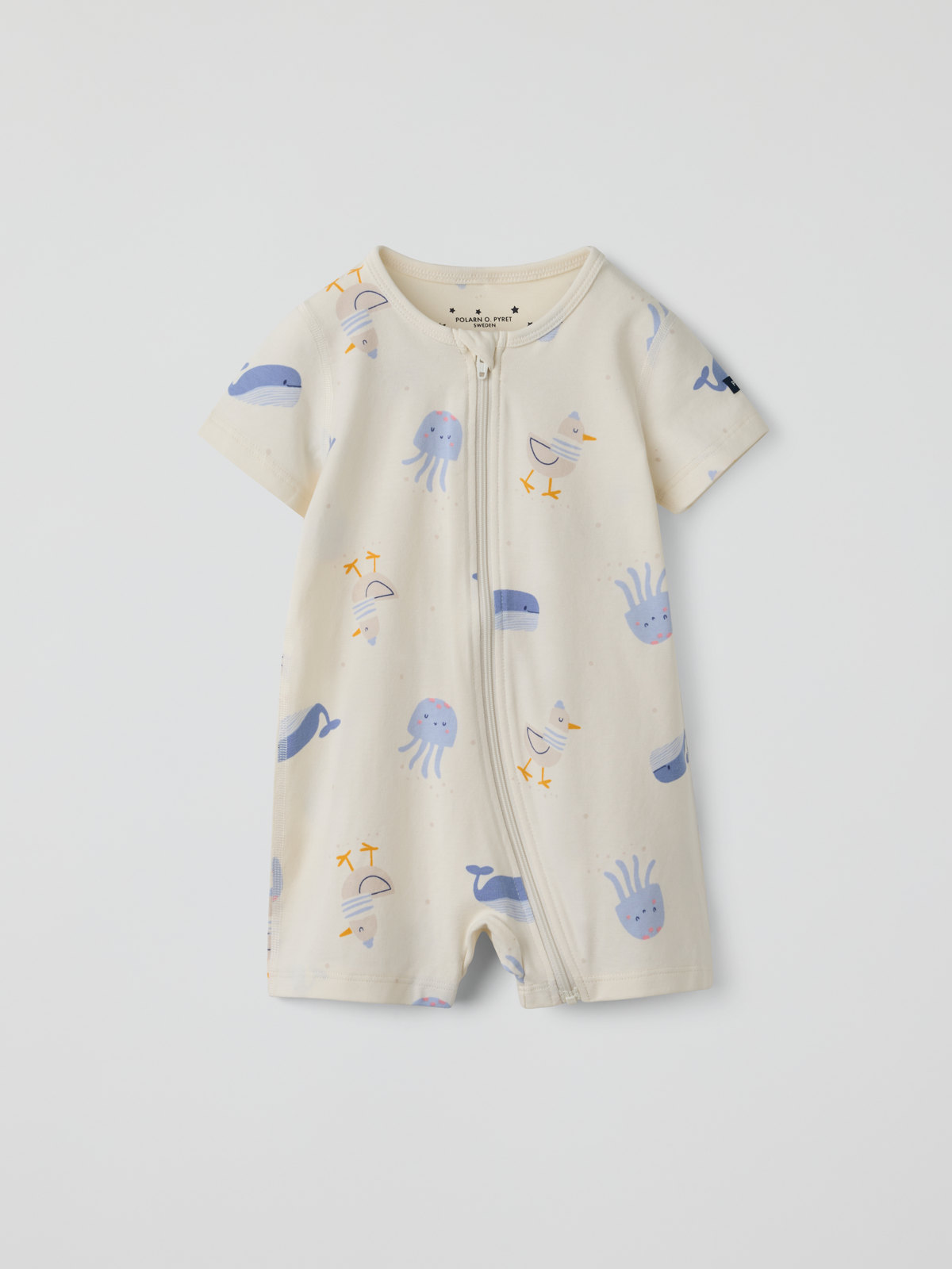 Lyhyt pyjamahaalari luomupuuvillasta – täydellinen lämpimiin öihin! Haalari on ommeltu erityisen pehmeillä saumoilla ja tuntuu hellävaraiselta herkälle iholle.