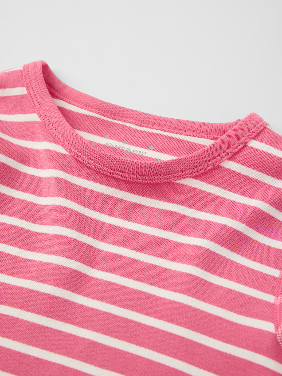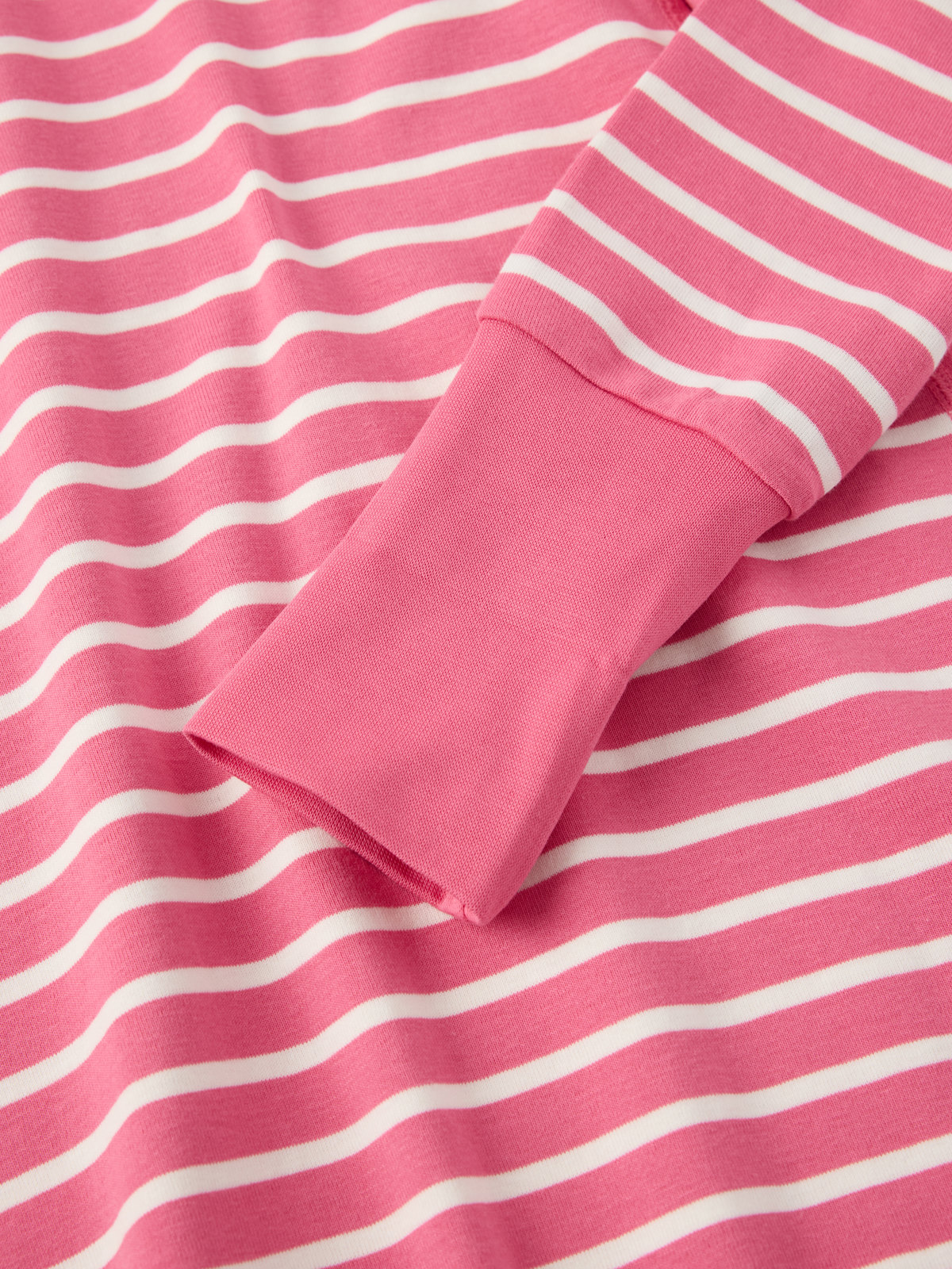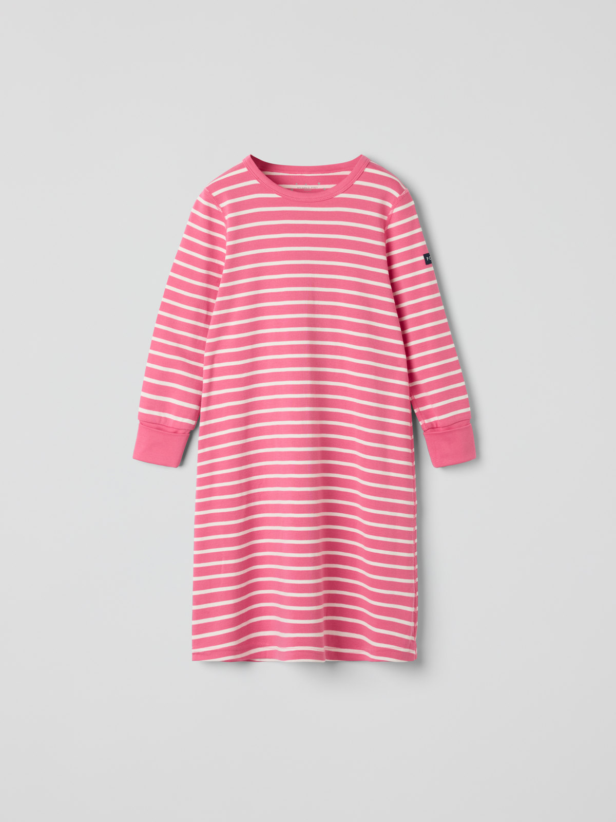 Pehmeä ja kaunis yöpaita 100 % luomupuuvillaa, aikuisten koot. Yöpaidassa on klassinen raitakuosimme. Hihansuissa pehmeät resorit.