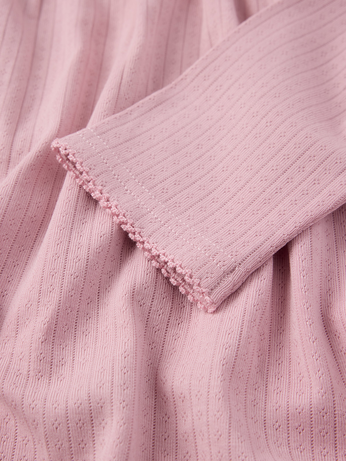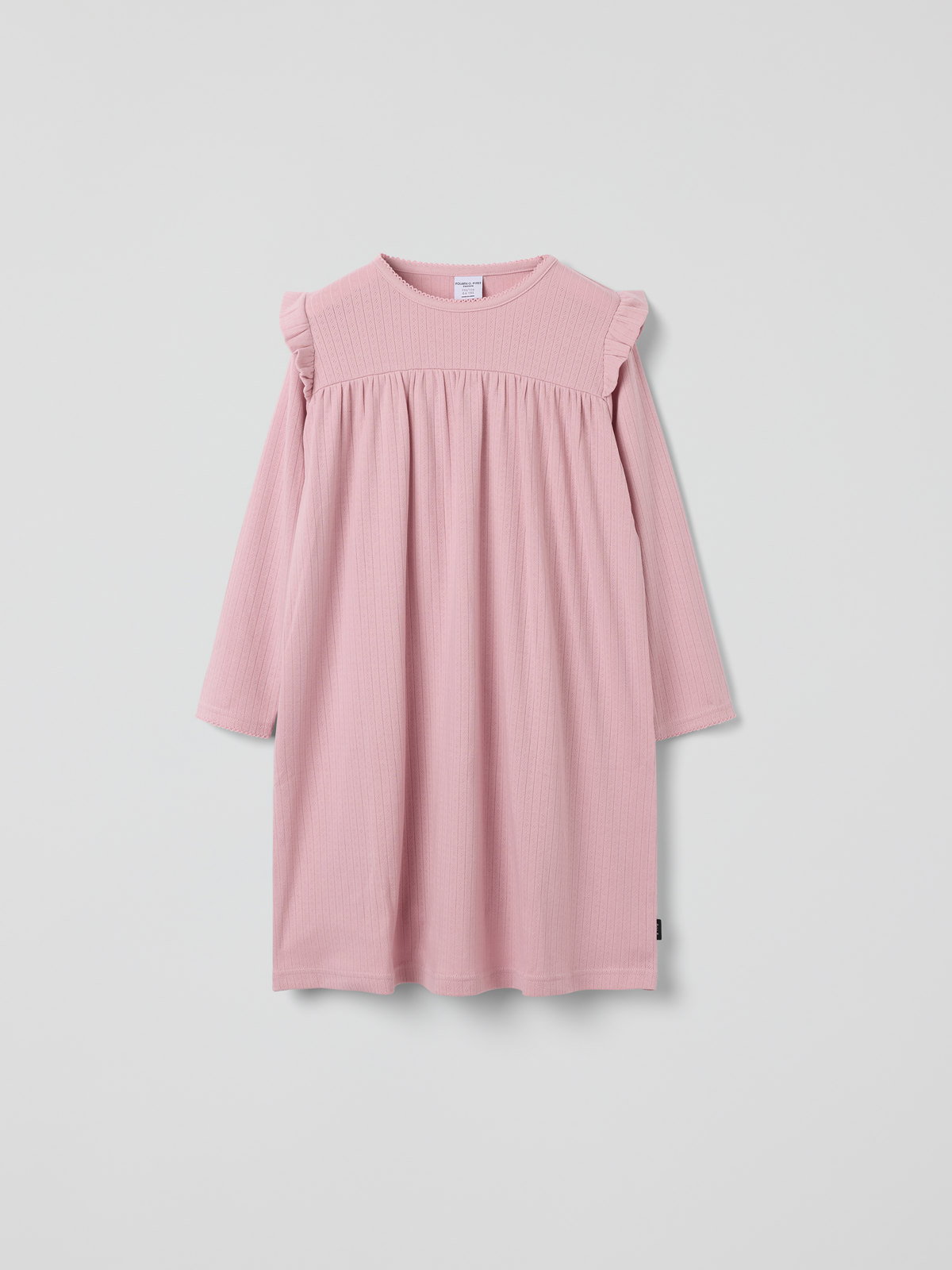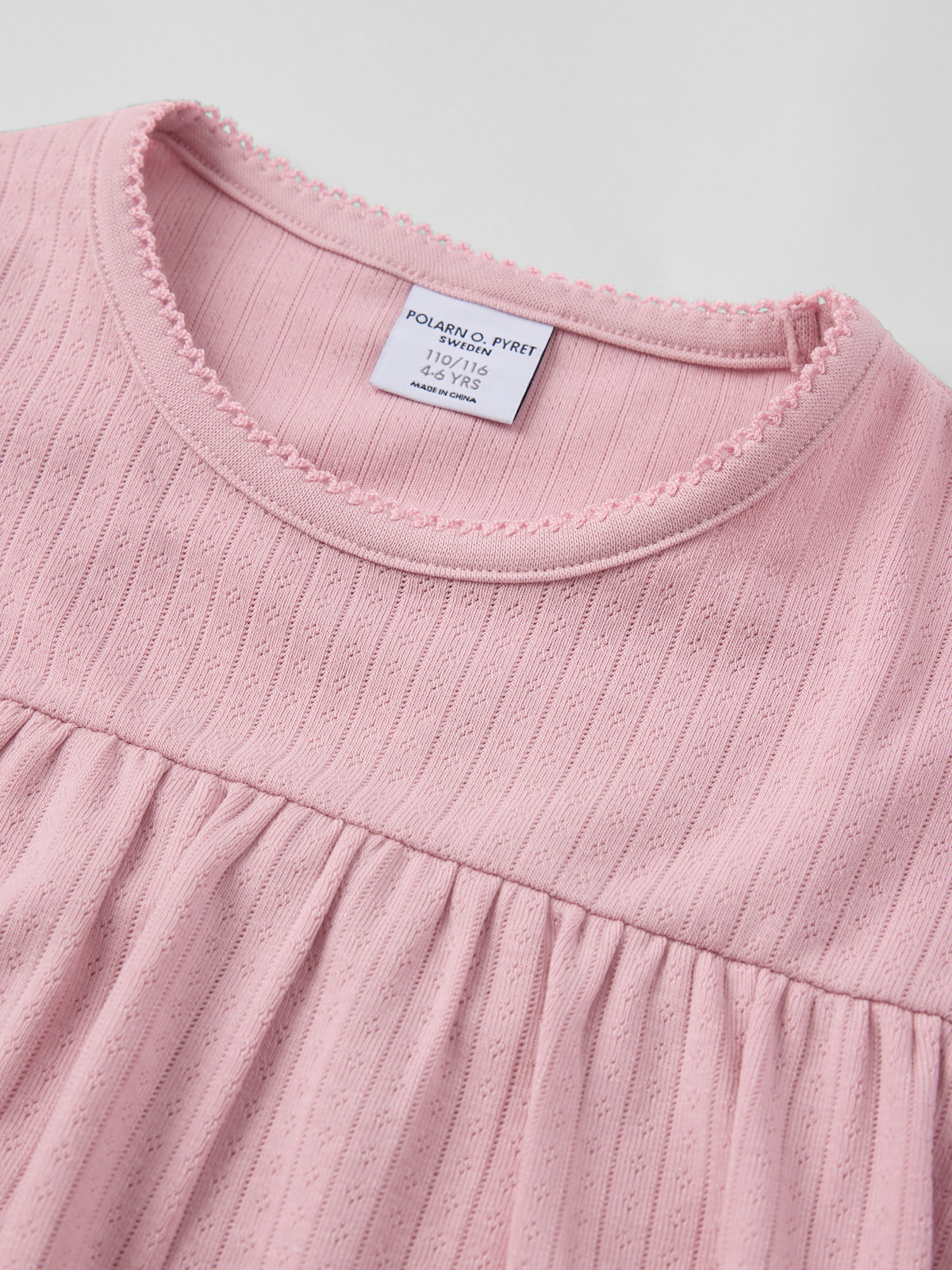 Yöpaita pehmeää Tencel™ lyocellia ja ekologista puuvillaa, ommeltu erityisen pehmeillä, litteillä saumoilla, jotka hellivät herkkää ihoa. Yöpaita on koristeltu suloisilla röyhelöillä olkapäillä.