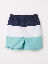Palkkiraidalliset uimashortsit, joissa on joustava vyötärö ja kiristysnauha.