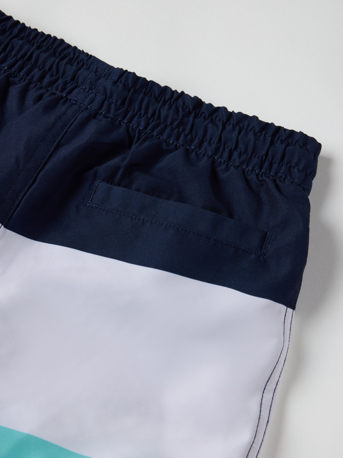 Palkkiraidalliset uimashortsit, joissa on joustava vyötärö ja kiristysnauha. Shortseissa on pehmeä verkkovuori ja takatasku. Valmistettu kierrätetystä polyesteristä.