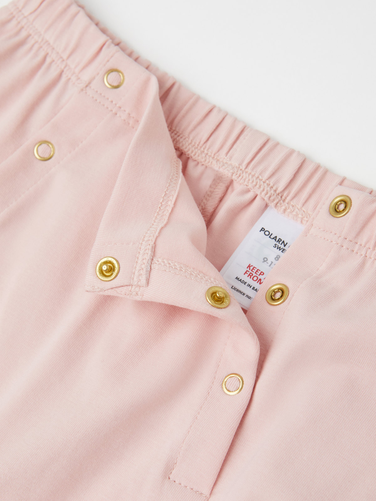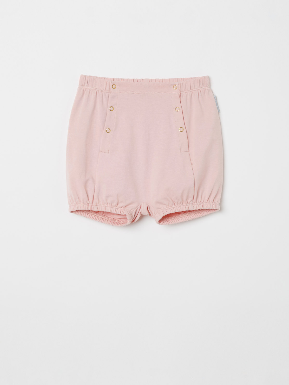 Vauvan yksiväriset shortsit 100 % luomupuuvillaa. Joustava vyötärö ja joustavat lahkeensuut. Nepparit vyötärön molemmilla sivuilla.
