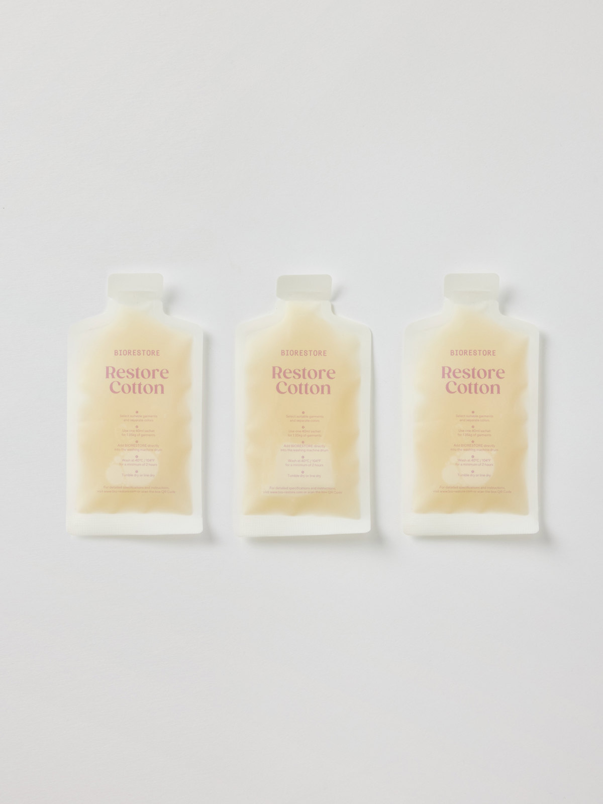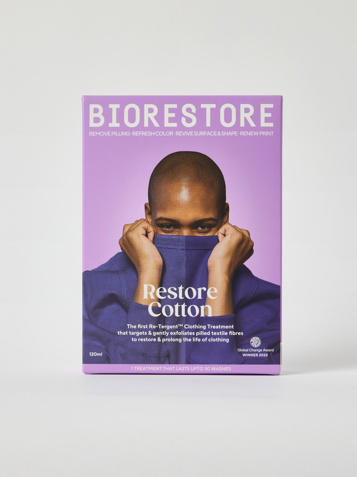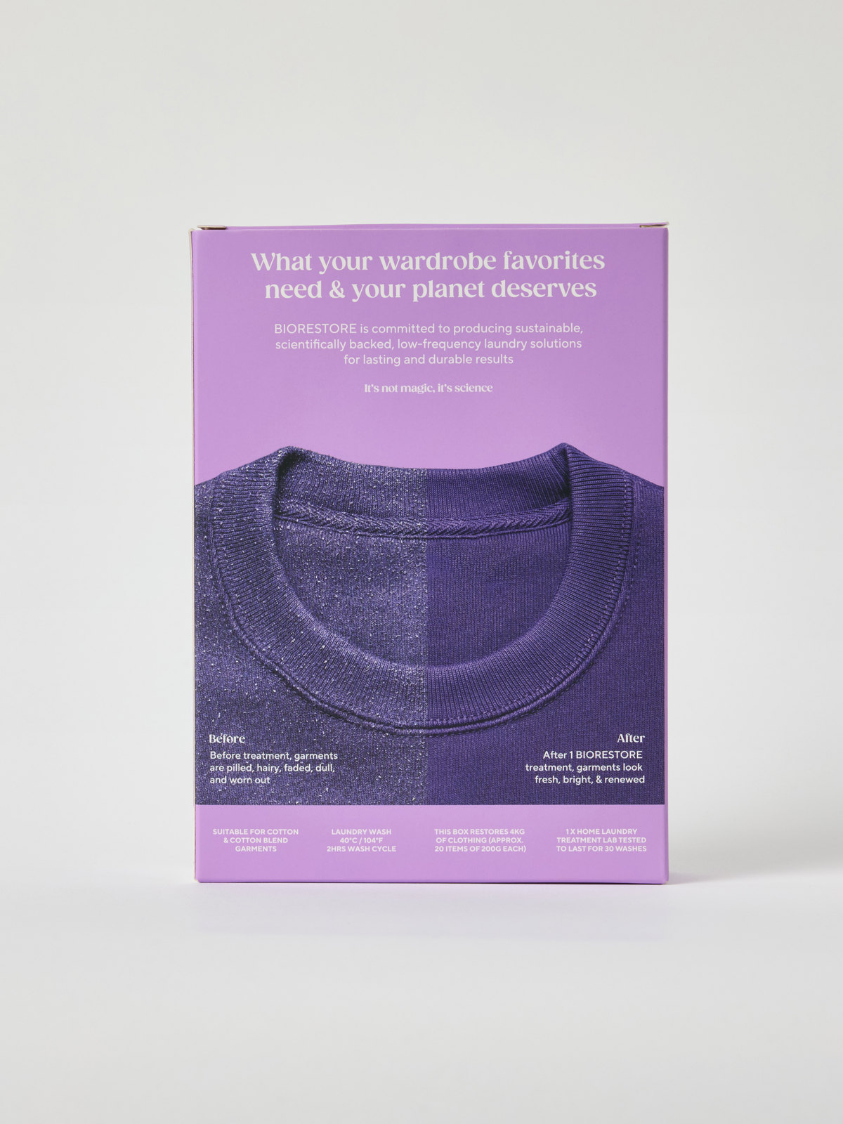 Uusi koostumus – anna jopa 4 kilolle vaatteita uusi elämä! Biorestore on entsyymivalmiste, joka yhdessä veden ja pesukoneen liikkeiden kanssa palauttaa värit, raikastaa pinnan, uudistaa painatukset ja tasoittaa vaatteiden tekstuurin. Yksi käsittely tekee suosikkivaatteistasi* jälleen kuin uusia.