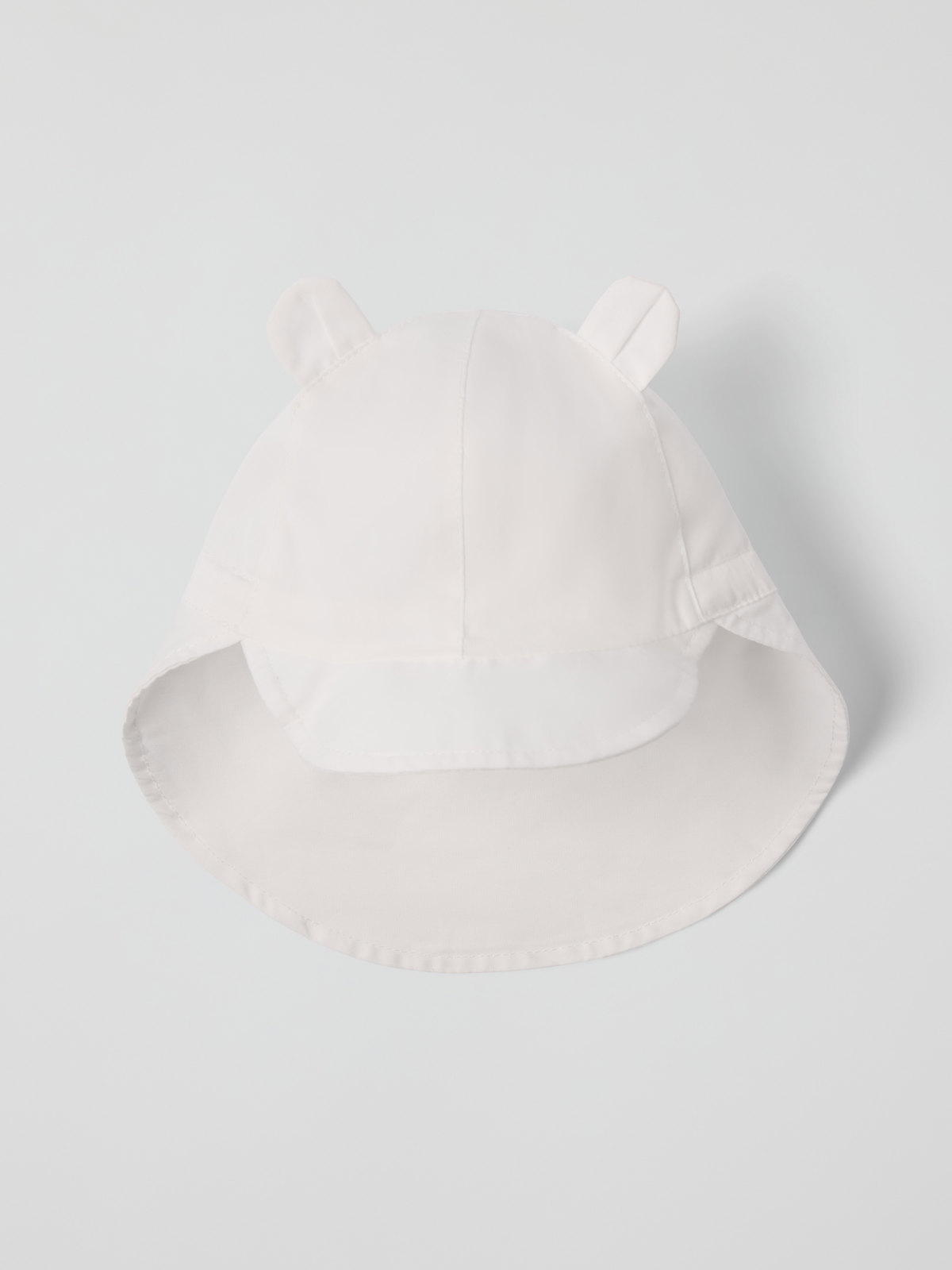 UPF 50 (Ultraviolet Protection Factor) tarkoittaa 98 % suojaa haitallisilta UV-säteiltä. lippalakki pienet korvat luomupuuvilla