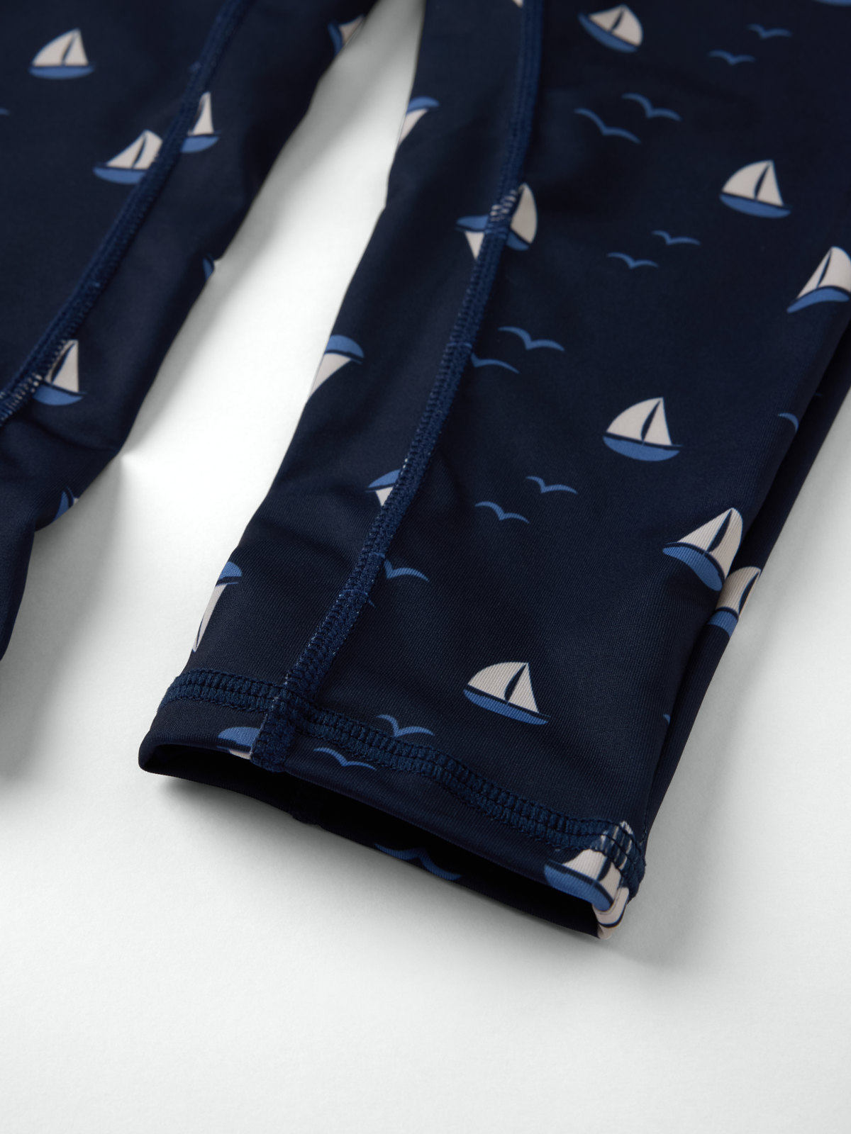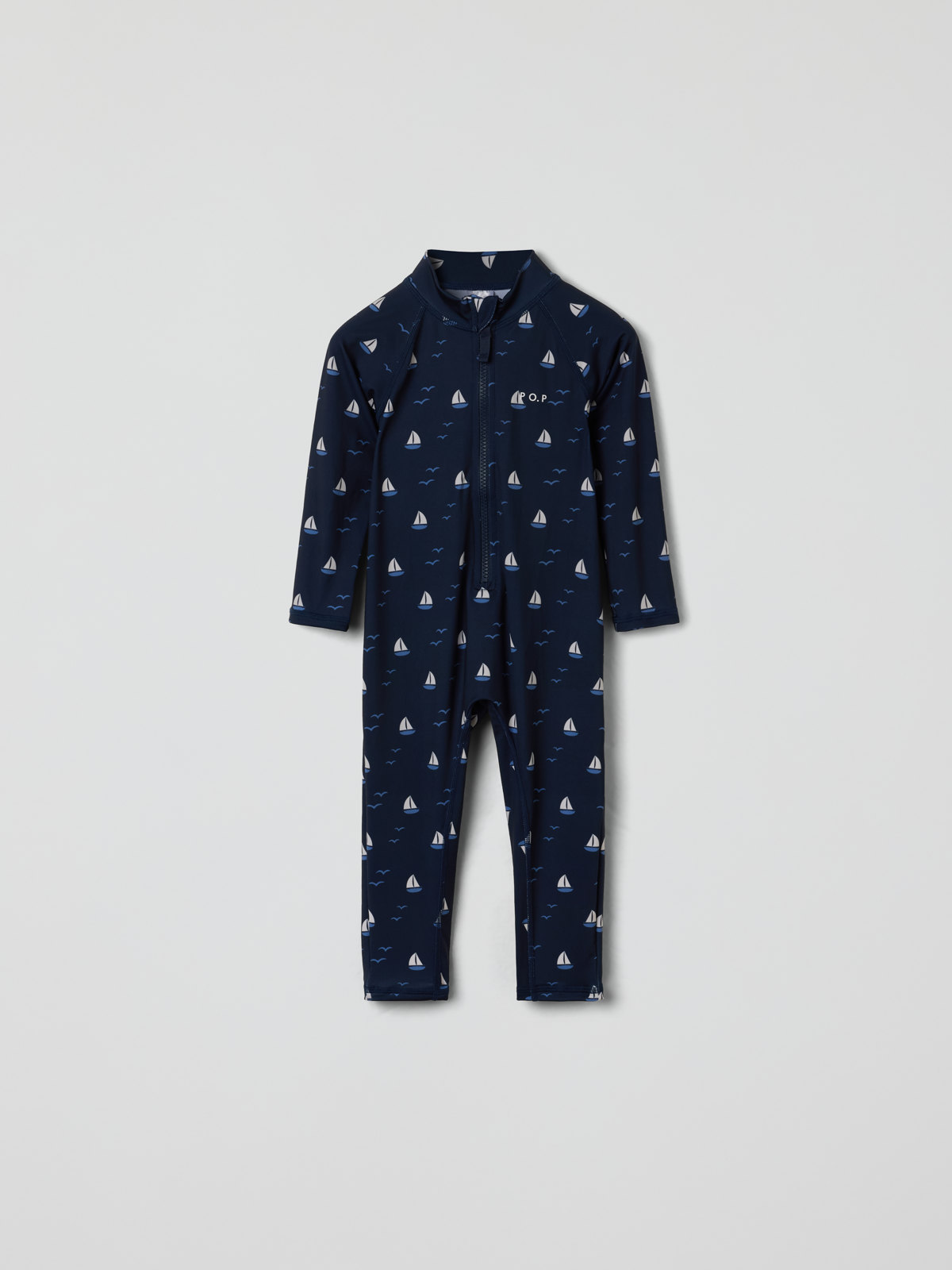 Kokopitkä UV-asu, jossa UPF 50 -suoja. Valmistettu pehmeästä ja miellyttävästä kierrätetystä polyesteristä, ja ommeltu erityisen pehmeillä saumoilla, jotka eivät hankaa. Puvussa on pitkät hihat ja lahkeet parhaan mahdollisen auringonsuojan takaamiseksi. Pitkä vetoketju helpottaa pukemista ja riisumista, ja ylhäällä on suoja, joka estää hiertämästä leukaa ja poskea.
