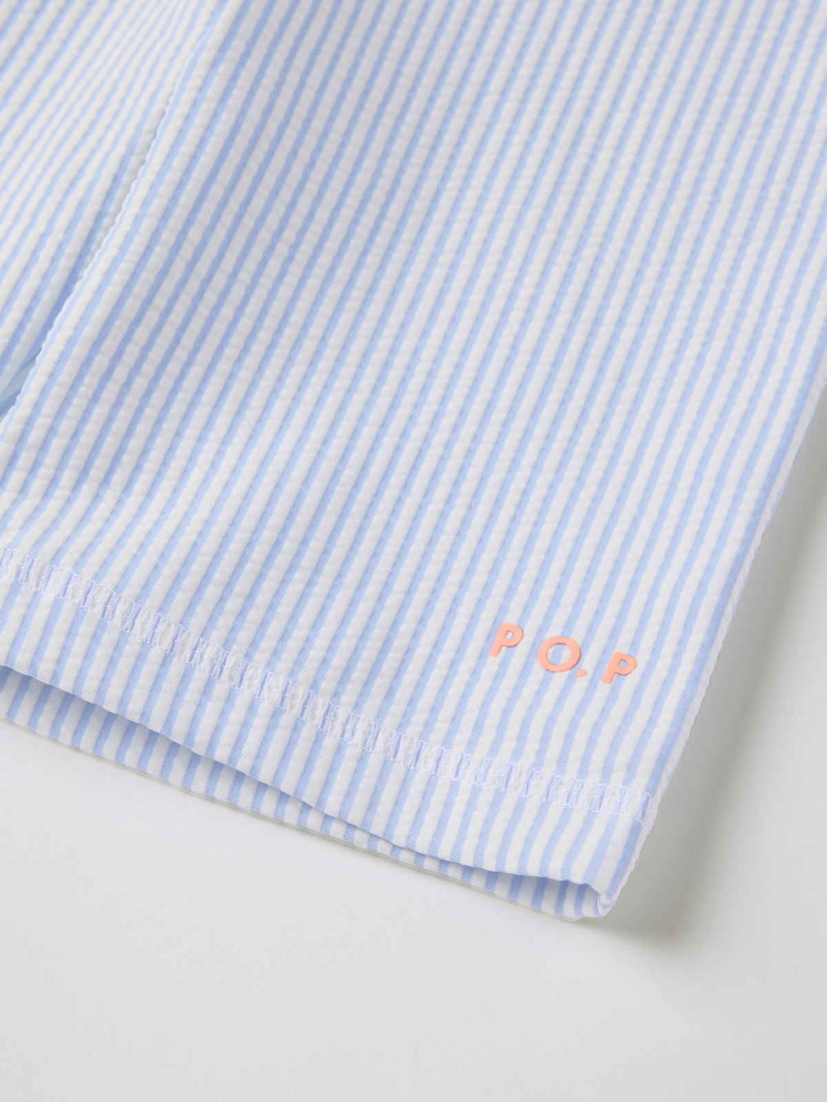 Raidallinen uimavaippa pehmeästä ja mukavasta seersuckerista – täydellinen vauvauintiin tai uimaretkelle! Uimavaipassa on leveä kuminauha vyötäröllä ja lahkeensuissa, mikä takaa hyvän istuvuuden ja estää pienten vahinkojen pääsyn housujen ulkopuolelle.