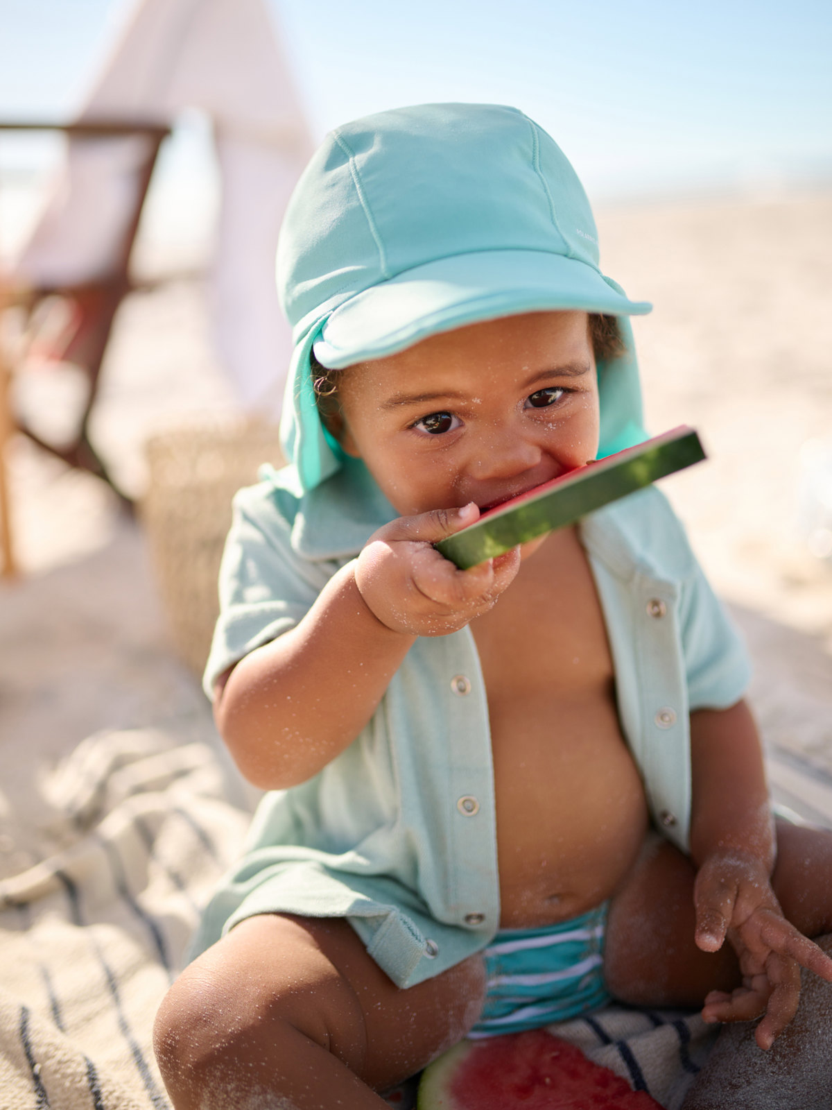 Pehmeä ja joustava aurinkosuojalippalakki, jossa on UV-suoja UPF 50 – täydellinen rannalle tai uima-altaalle!