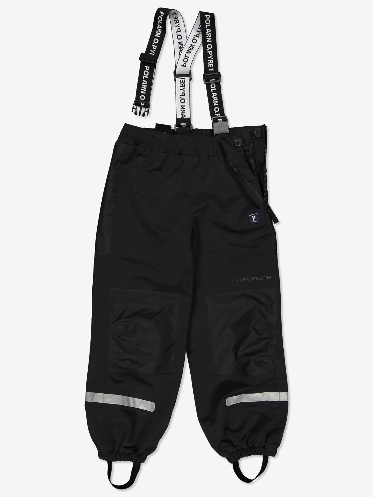 Tuulen- ja vedenpitävät kuorihousut, jotka kestävät hyvin kulutusta. Täydelliset ulkoleikkeihin. Housut ovat kulutusta kestävää materiaalia, ja polvissa ja takaosassa on vahvikkeet. Housut ovat hyvin hengittävät, koska ne siirtävät liian lämmön ja kosteuden ulos. Täysin teipatut saumat takaavat vedenpitävyyden. Housuissa on irrotettavat ja säädettävät olkaimet sekä säädettävä vyötärö. Vetoketju sivussa helpottaa pukemista. Muotoillut polviosat ja joustavat lahkeensuut takaavat hyvän liikkuvuuden ja istuvuuden. Vaihdettavat kuminauhalenkit pitävät lahkeet paikoillaan. Kerros 3 – ulkovaatekerros, joka pitää lapset lämpiminä ja kuivina kaikissa säissä.