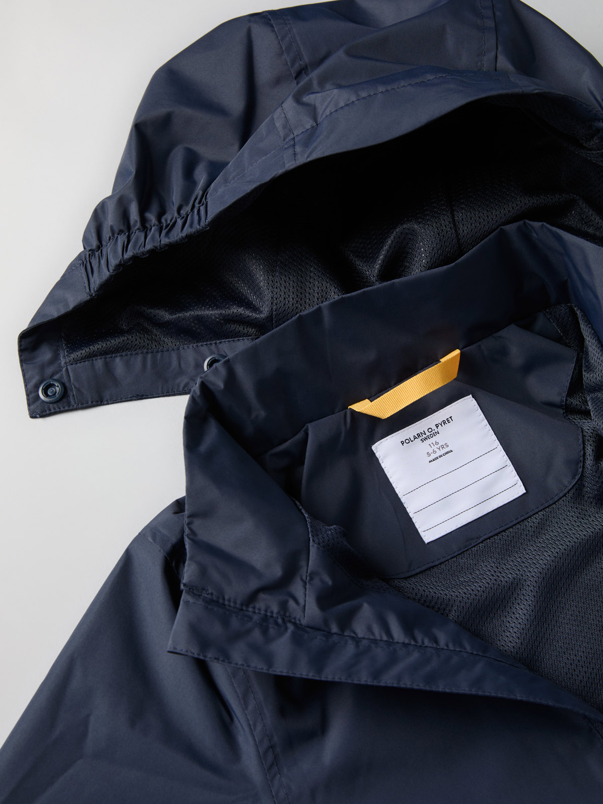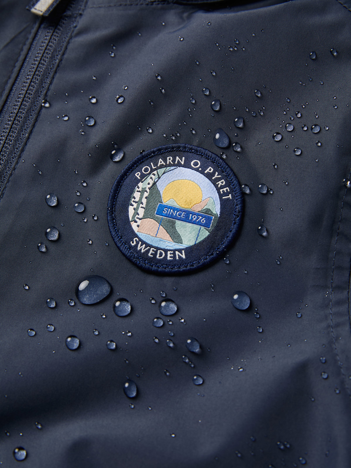 Tuulen- ja vedenpitävä takki ohutta ja joustavaa kierrätettyä polyesteristä – täydellinen reppuun, josta sen voi pukea nopeasti päälle sateen sattuessa! Materiaali hengittää hyvin ja siirtää liiallisen lämmön ja kosteuden ulos.