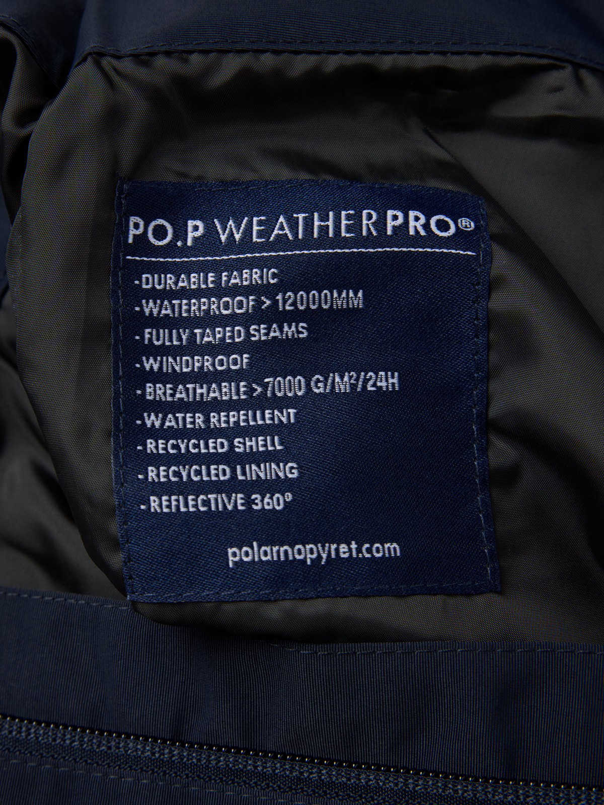 Ulkovaatteet, joissa on merkintä PO.P WeatherPro®, täyttävät kaikki vaatimuksemme teknisille ulkovaatteille, olipa kyse sitten kestävyydestä, vedenpitävyydestä, hengittävyydestä tai lapsiturvallisuudesta.