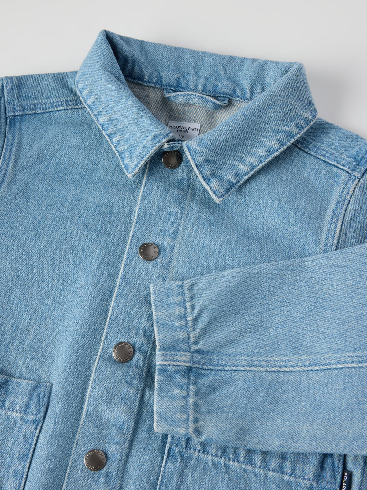 Takki pehmeää ja mukavaa, kevyesti joustavaa farkkua – täydellinen mukaviin kevät- ja syyspäiviin! Takissa on nepparikiinnitys ja kaksi isoa etutaskua. Kaikki farkkutuotteemme on valmistettu GOTS-sertifioidusta puuvillasta keväästä 2022 alkaen!