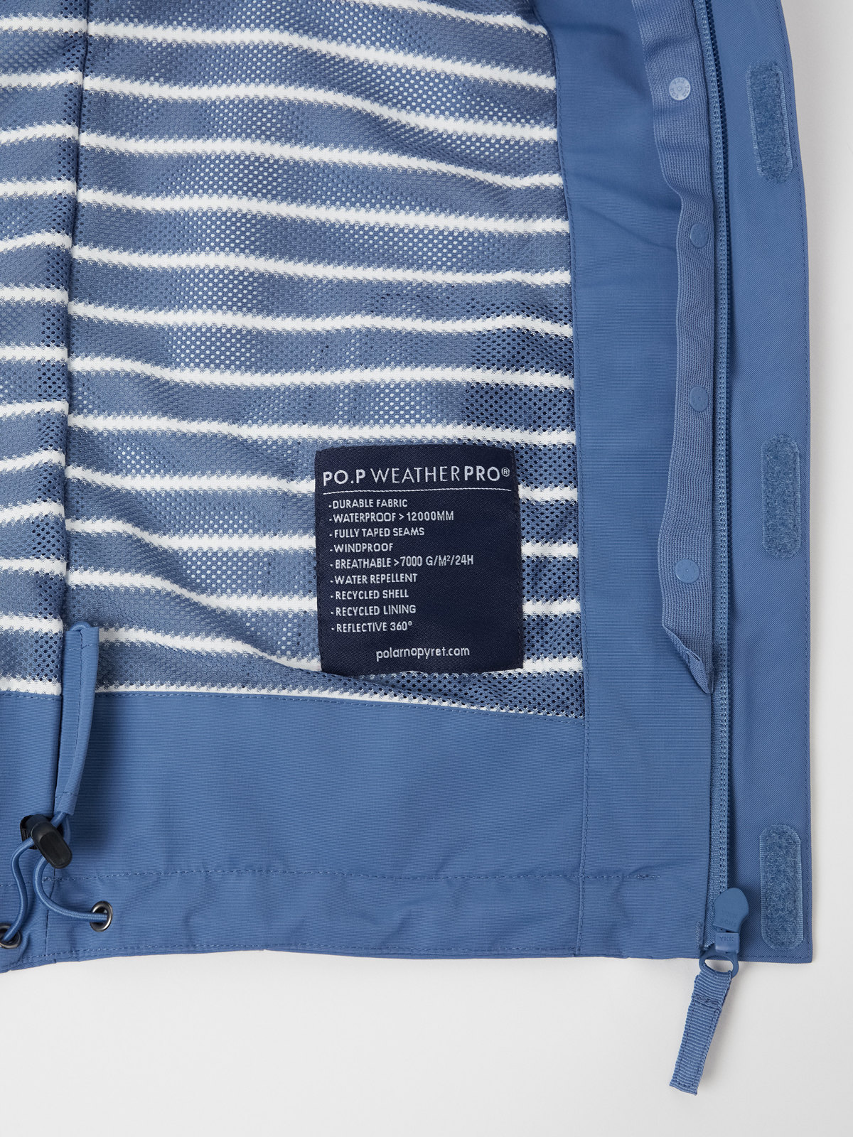 Ulkovaatteet, joissa on merkintä PO.P WeatherPro®, täyttävät kaikki vaatimuksemme teknisille ulkovaatteille, olipa kyse sitten kestävyydestä, vedenpitävyydestä, hengittävyydestä tai lapsiturvallisuudesta.