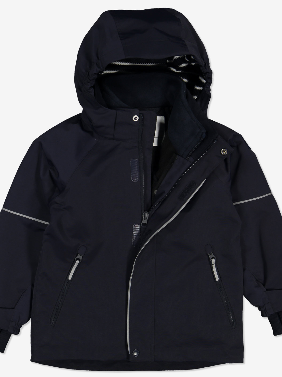 Tuulen- ja vedenpitävä kuoritakki, joka kestää hyvin kulutusta. Takki on kulutusta kestävää materiaalia, joka myös hengittää hyvin. Takissa on raidallinen verkkovuori ja irrotettava huppu, jossa on nepparikiinnitys. Säädettävässä hupussa on sivuilla kuminauhat. Takin joustavia hihansuita voi säätää tarranauhoilla, ja muotoillut hihat takaavat hyvän istuvuuden. Täysin teipatut saumat tekevät takista täysin vedenpitävän. Vetoketjun ulko- ja sisäpuolella on tuulisuoja, joka antaa lisäsuojaa kylmyyttä ja kosteutta vastaan. Tuulisuojan yläosassa on pehmeä fleecevuori. Kuoritakin ainutlaatuisen nepparilistan avulla se on kiinnitettävissä windfleeceemme. Kerros 3 – lämpimänä pitävä ja säältä suojaava ulkokerros