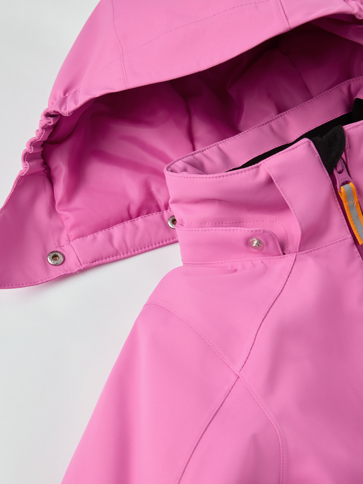 • Säädettävä, irrotettava huppu kiinnitetään neppareilla. Joustava reunus parantaa istuvuutta ja suojaa