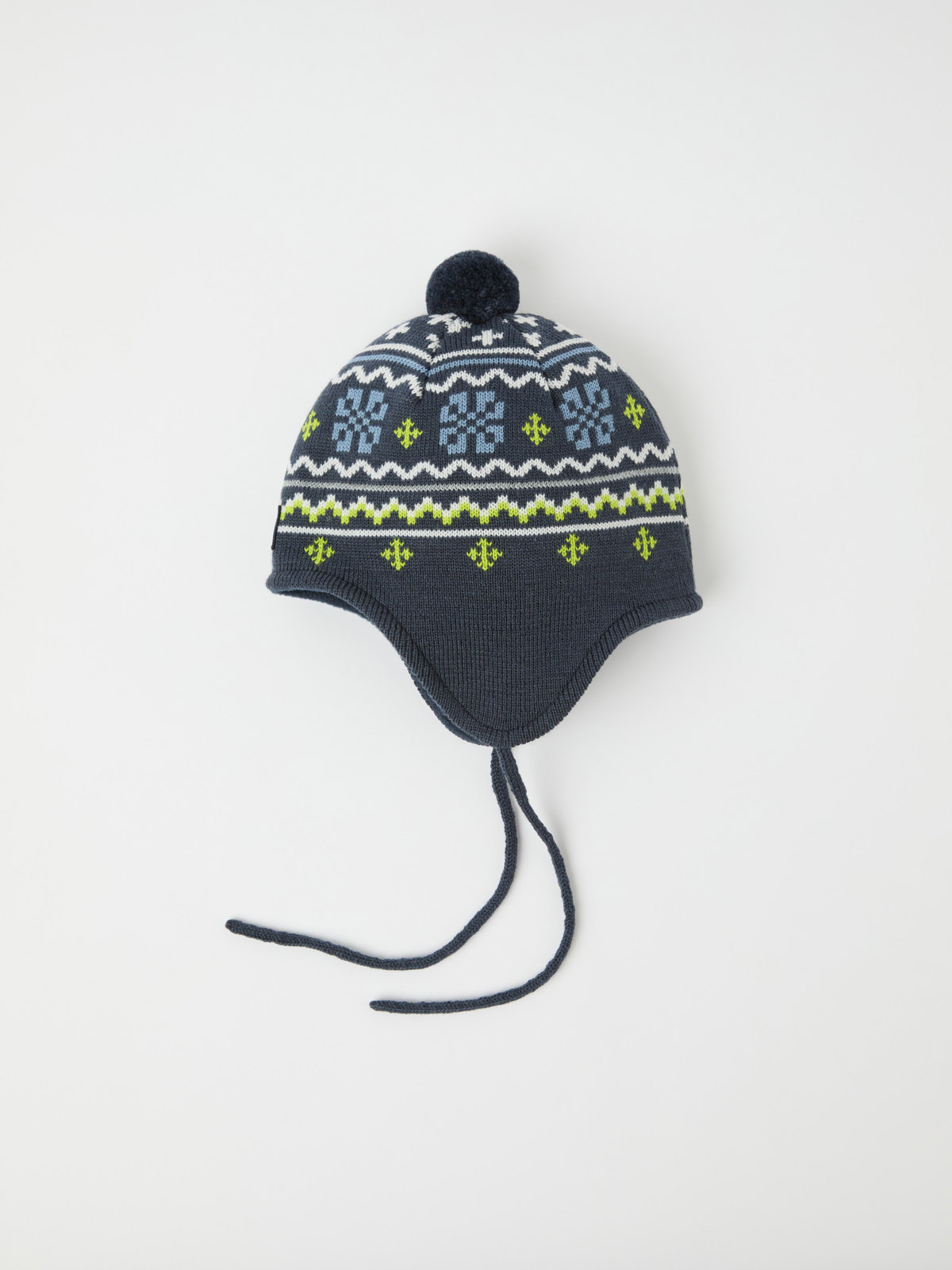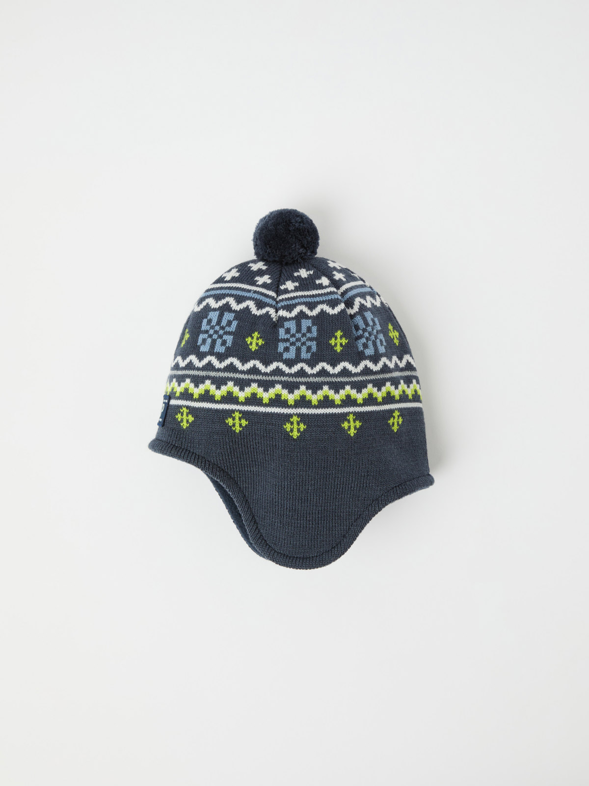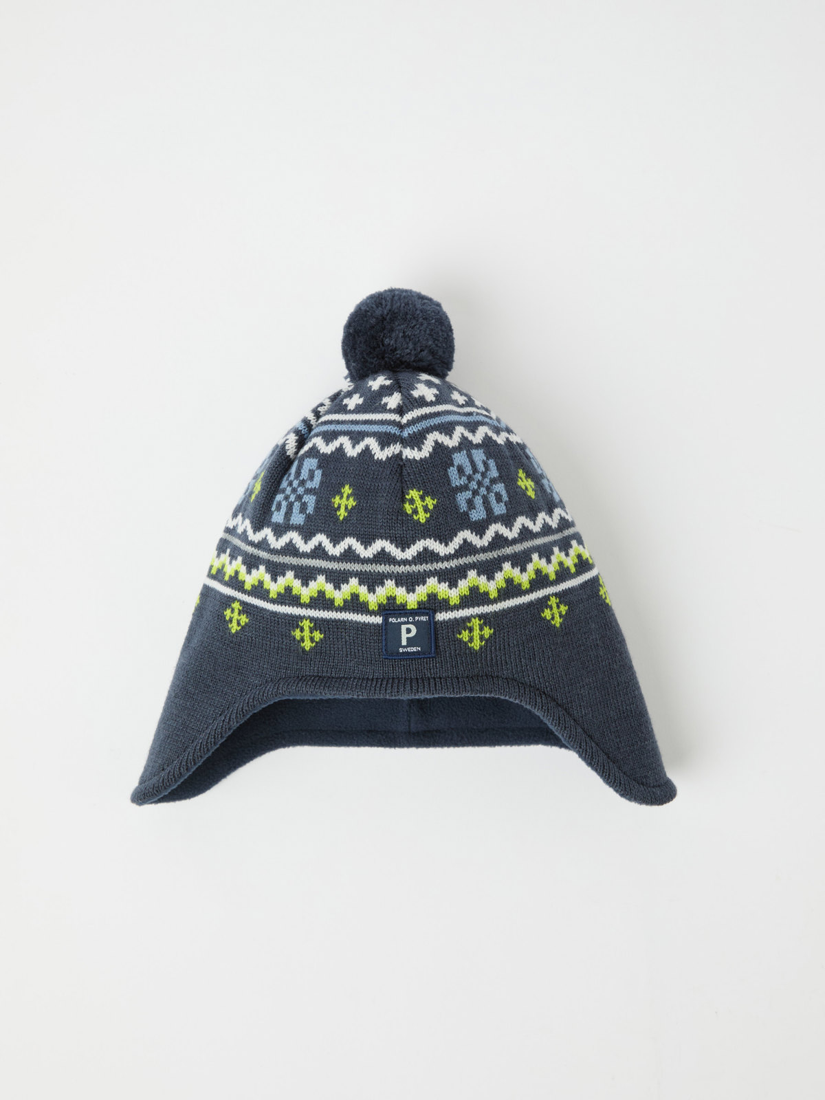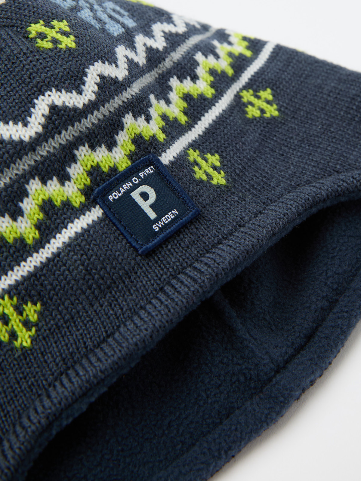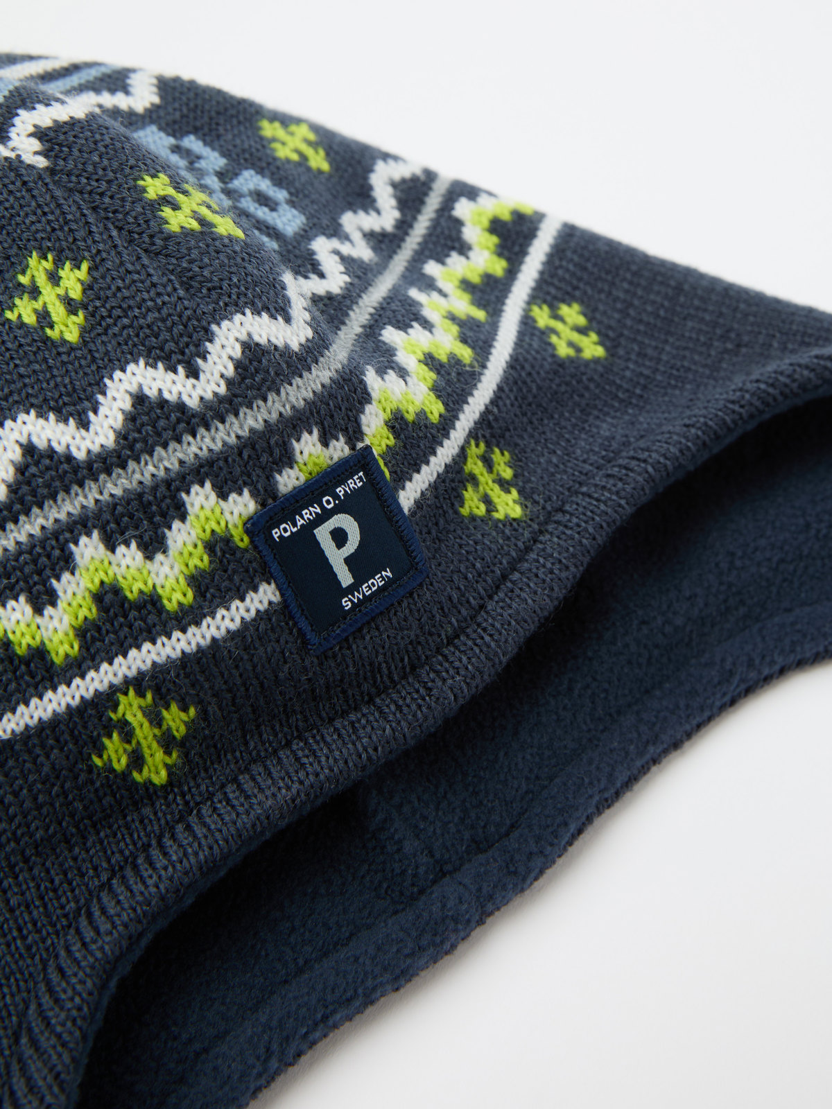 Tuulenpitävä pipo villasekoitetta fleecevuorilla ja jacquard-kuviolla