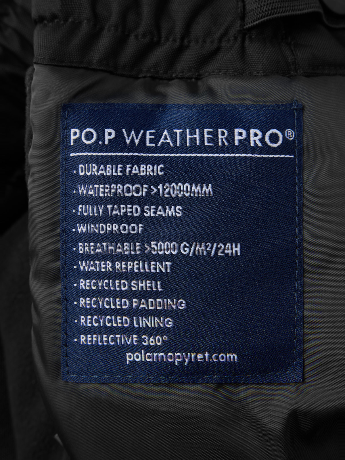 Ulkovaatteet, joissa on merkintä PO.P WeatherPro®, täyttävät kaikki vaatimuksemme teknisille ulkovaatteille, olipa kyse sitten kestävyydestä, vedenpitävyydestä, hengittävyydestä tai lapsiturvallisuudesta.