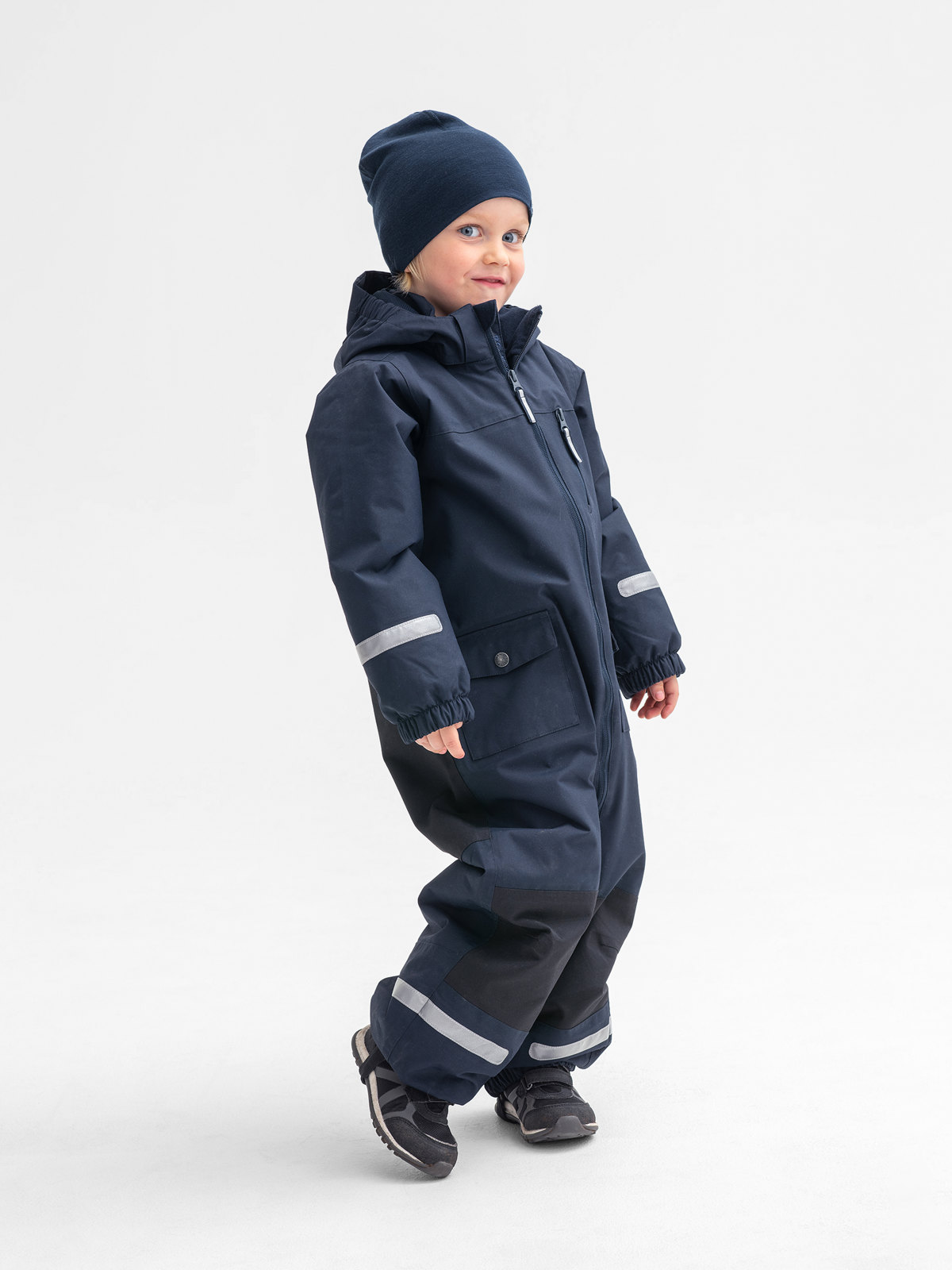 Irrotettava, lämmin ja mukava fleecevuori tekevät tästä vaatteesta erityisen, joten se sopii käytettäväksi niin keväällä, syksyllä kuin leudompina talvipäivinäkin. Sisäpuolen neppareista ensimmäisenä kiinnitettävä on kontrastivärinen, joten fleecevuoren kiinnittäminen haalariin on helppoa. Säädettävässä ja irrotettavassa hupussa on nepparikiinnitys. Kauluksen ja hihansuiden sisäpuolella on pehmeä fleecevuori. Tuulisuoja vetoketjun sisäpuolella antaa lisäsuojaa kylmää ilmaa vastaan. Vyötärö sekä hihan- ja lahkeensuut ovat joustavat, mikä takaa mukavan istuvuuden. Vaihdettavat joustavat jalkalenkit pitävät lahkeet paikoillaan.