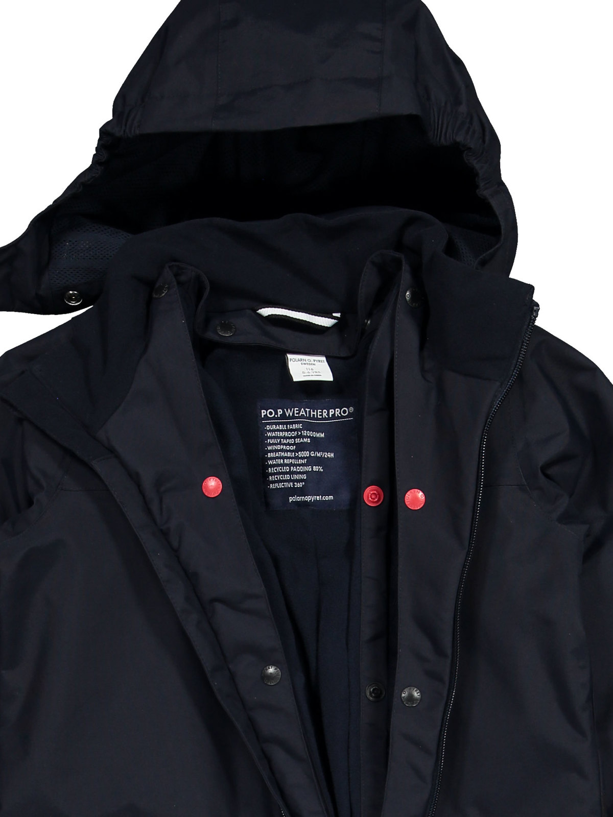 Ulkovaatteet, joissa on merkintä PO.P WeatherPRO®, täyttävät kaikki vaatimuksemme teknisille ulkovaatteille, olipa kyse sitten kestävyydestä, vedenpitävyydestä, hengittävyydestä tai lapsiturvallisuudesta. Ulkovaatteiden PO.P WeatherPRO® -merkintä on aina takuumme seuraavista ominaisuuksista: