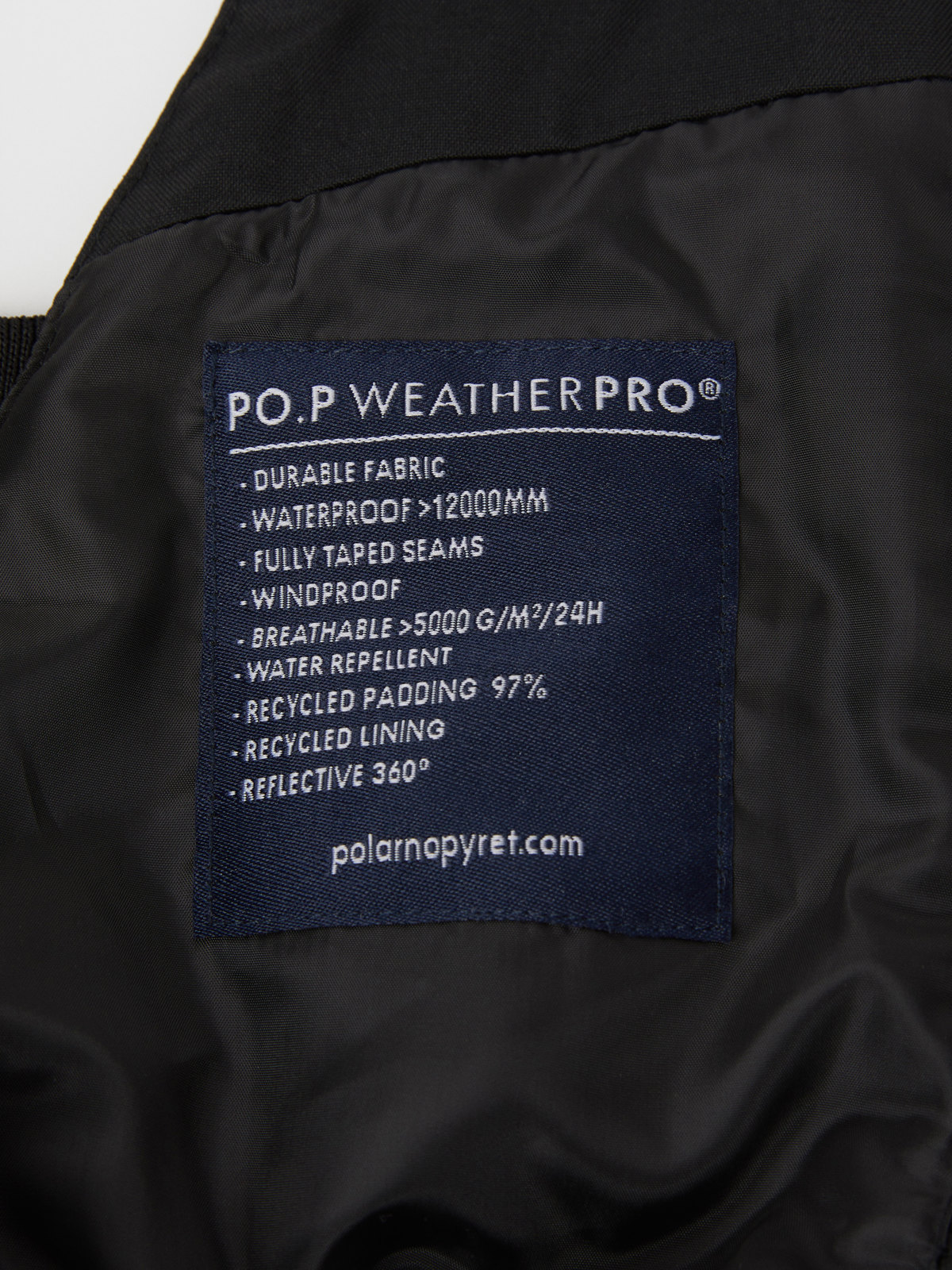 Ulkovaatteet, joissa on merkintä PO.P WeatherPro®, täyttävät kaikki vaatimuksemme teknisille ulkovaatteille, olipa kyse sitten kestävyydestä, vedenpitävyydestä, hengittävyydestä tai lapsiturvallisuudesta.