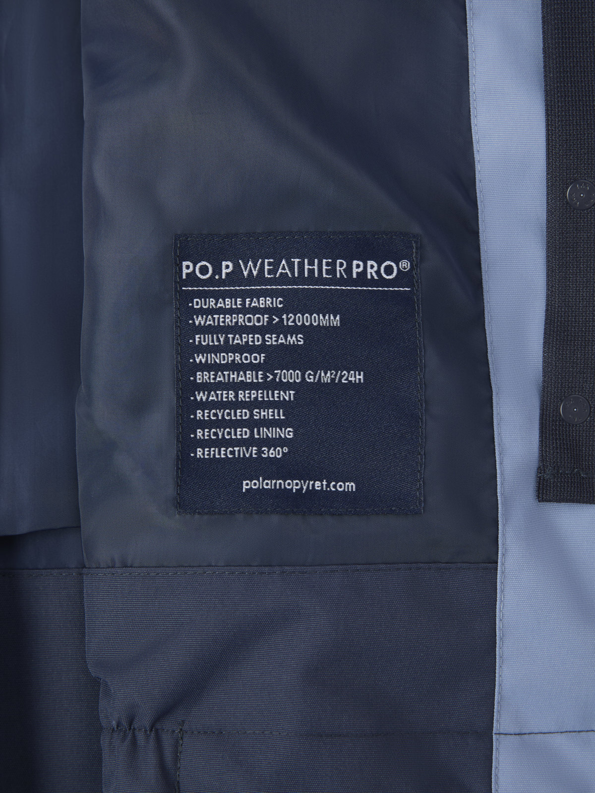 Ulkovaatteet, joissa on merkintä PO.P WeatherPro®, täyttävät kaikki vaatimuksemme teknisille ulkovaatteille, olipa kyse sitten kestävyydestä, vedenpitävyydestä, hengittävyydestä tai lapsiturvallisuudesta.