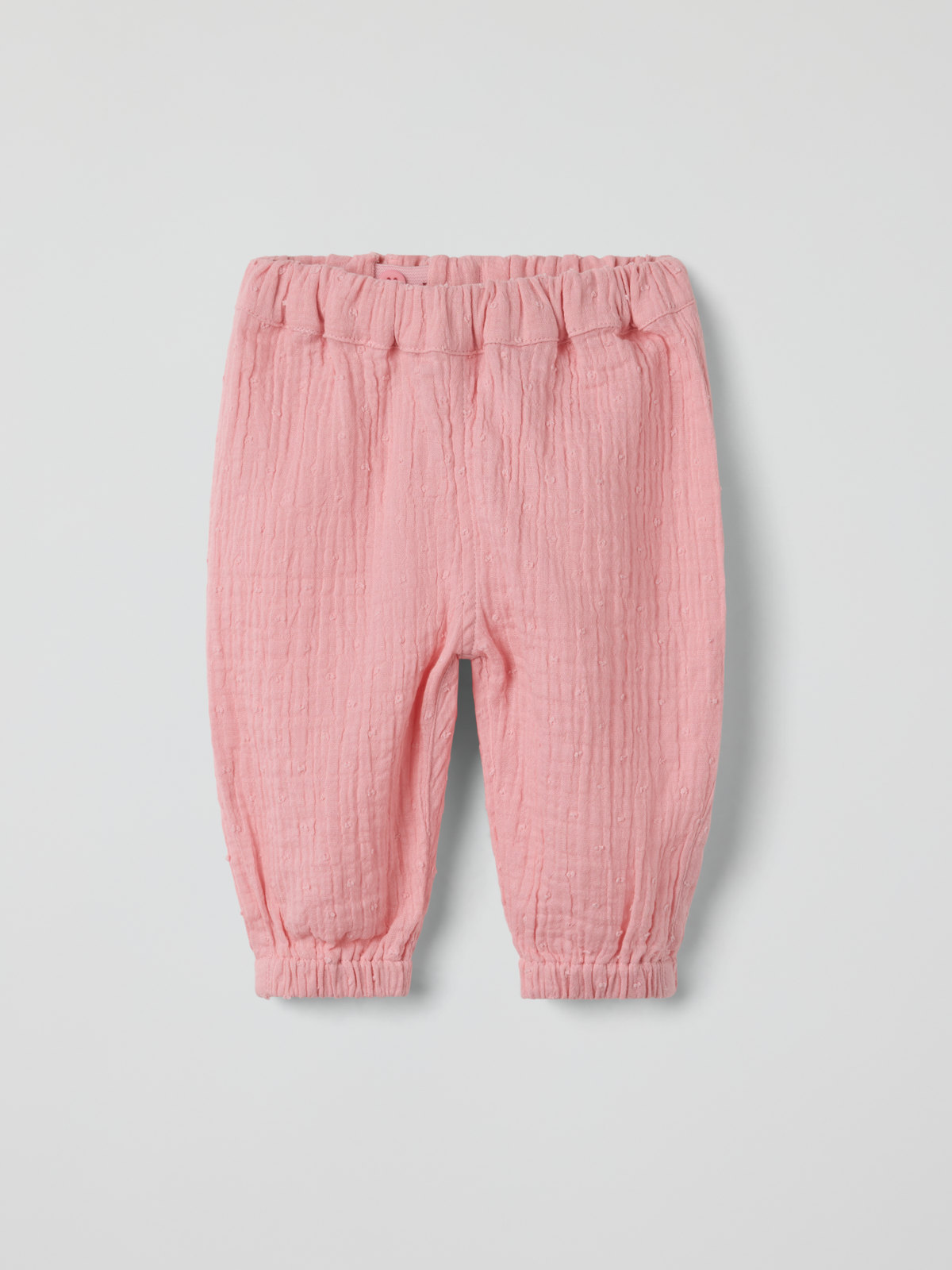 Suloinen housu kevyestä musliinista, 100 % luomupuuvillaa – täydellinen kesän juhliin! Housuissa on joustava vyötärö ja lahkeensuut, mikä takaa mukavan istuvuuden.