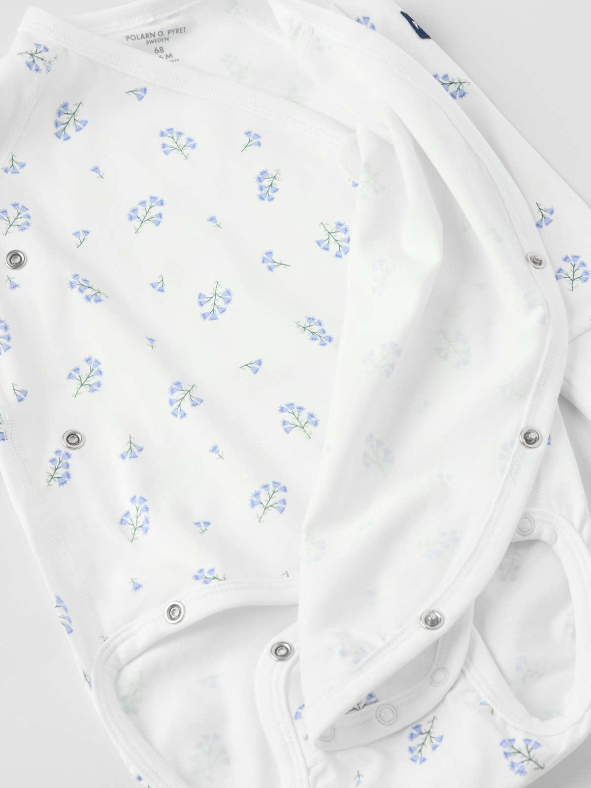Pidennettävä kietaisubody luomupuuvillaa. Kätevä lisärivi neppareita haarassa ja taitettavat resorit hihansuissa antavat pidemmän käyttöiän, ja body kasvaa lapsen mukana.