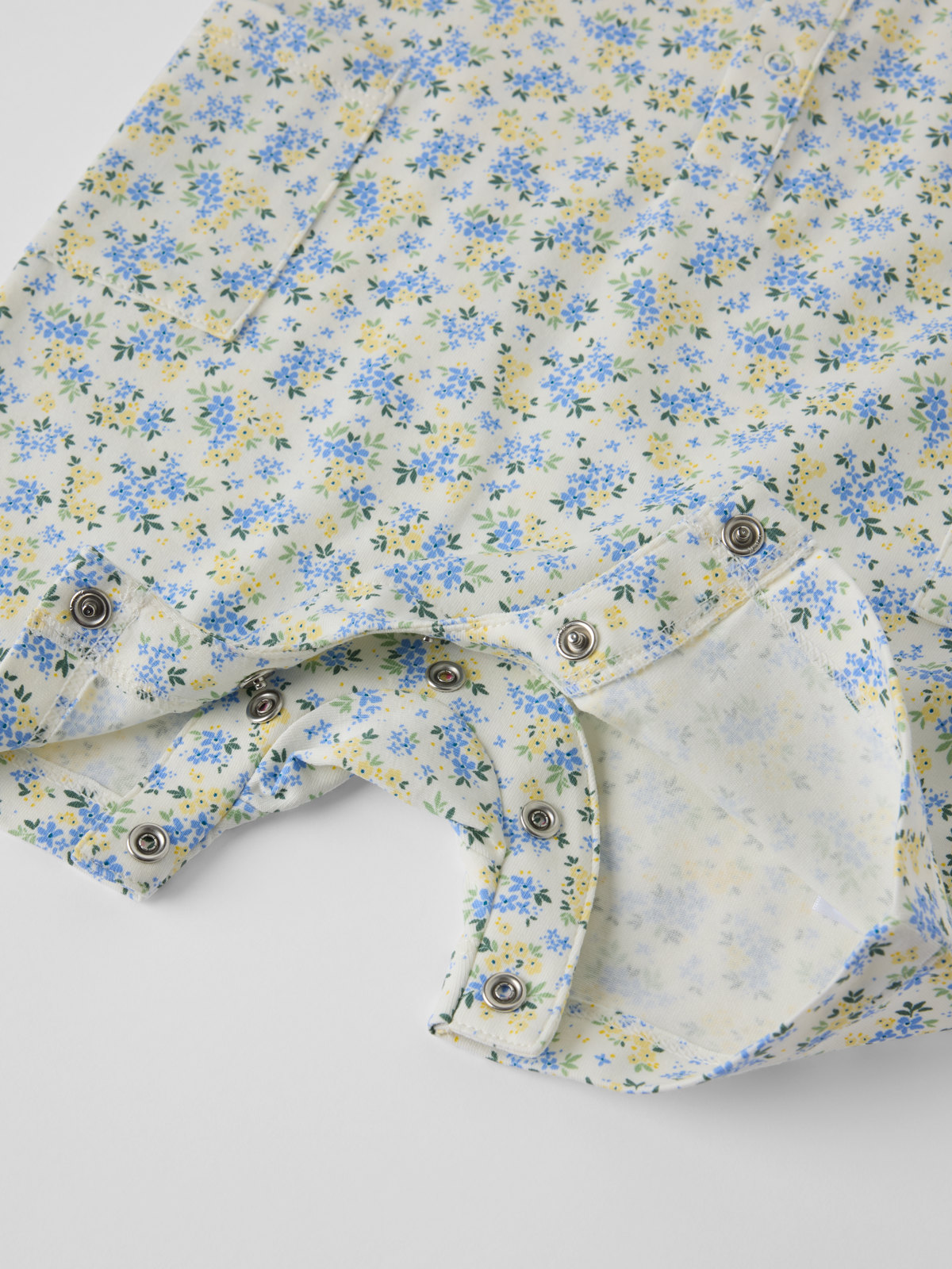 Kukkakuvioinen jumpsuit pehmeästä luomupuuvillasta vauvalle – todellinen kesäsuosikki! Jumpsuitissa on nappilista edessä ja erityisen pehmeät saumat, jotka hellivät herkkää ihoa. Kaksi suurta etutaskua. Nepparit haarassa helpottavat pukemista ja vaipanvaihtoa. Yhdistele peiton, unirätin, mekon ja aurinkohatun kanssa! Täydellinen sisarusmatch! Ominaisuudet: • YKK-nepparit kukkakuvioinen jumpsuit vauva luomupuuvilla