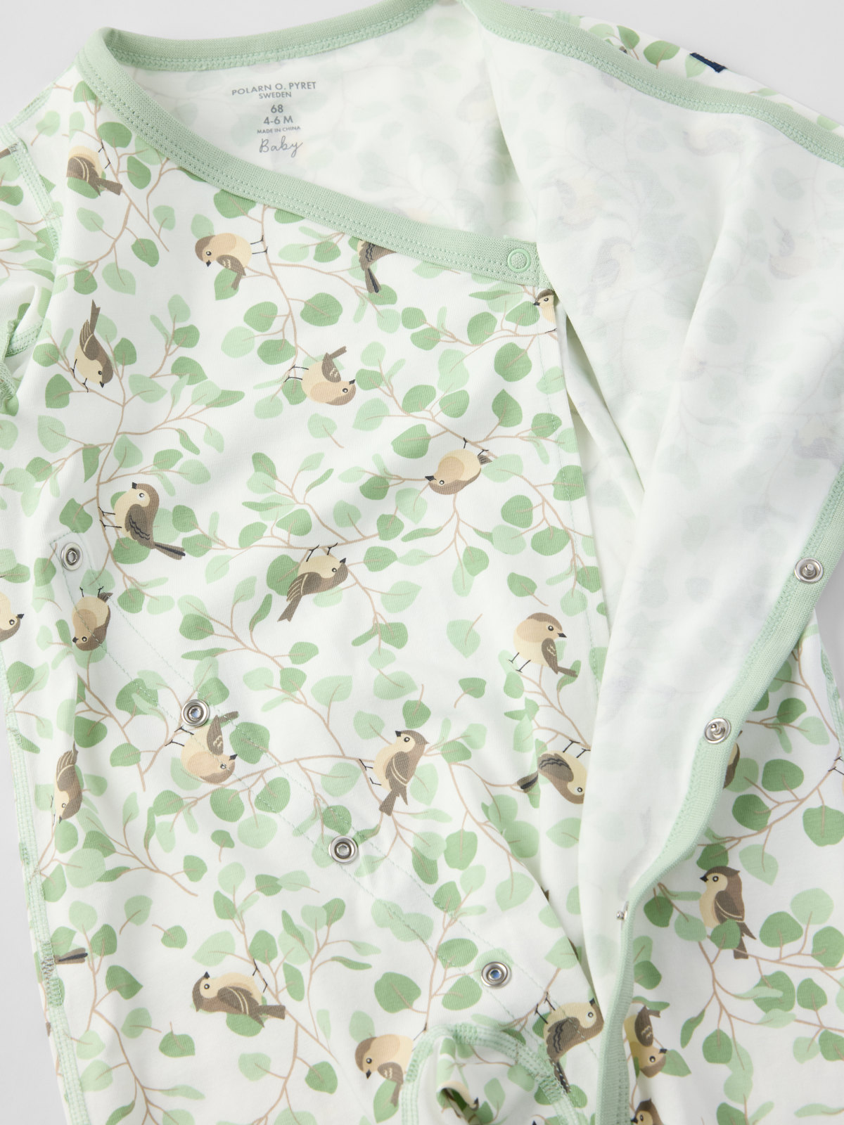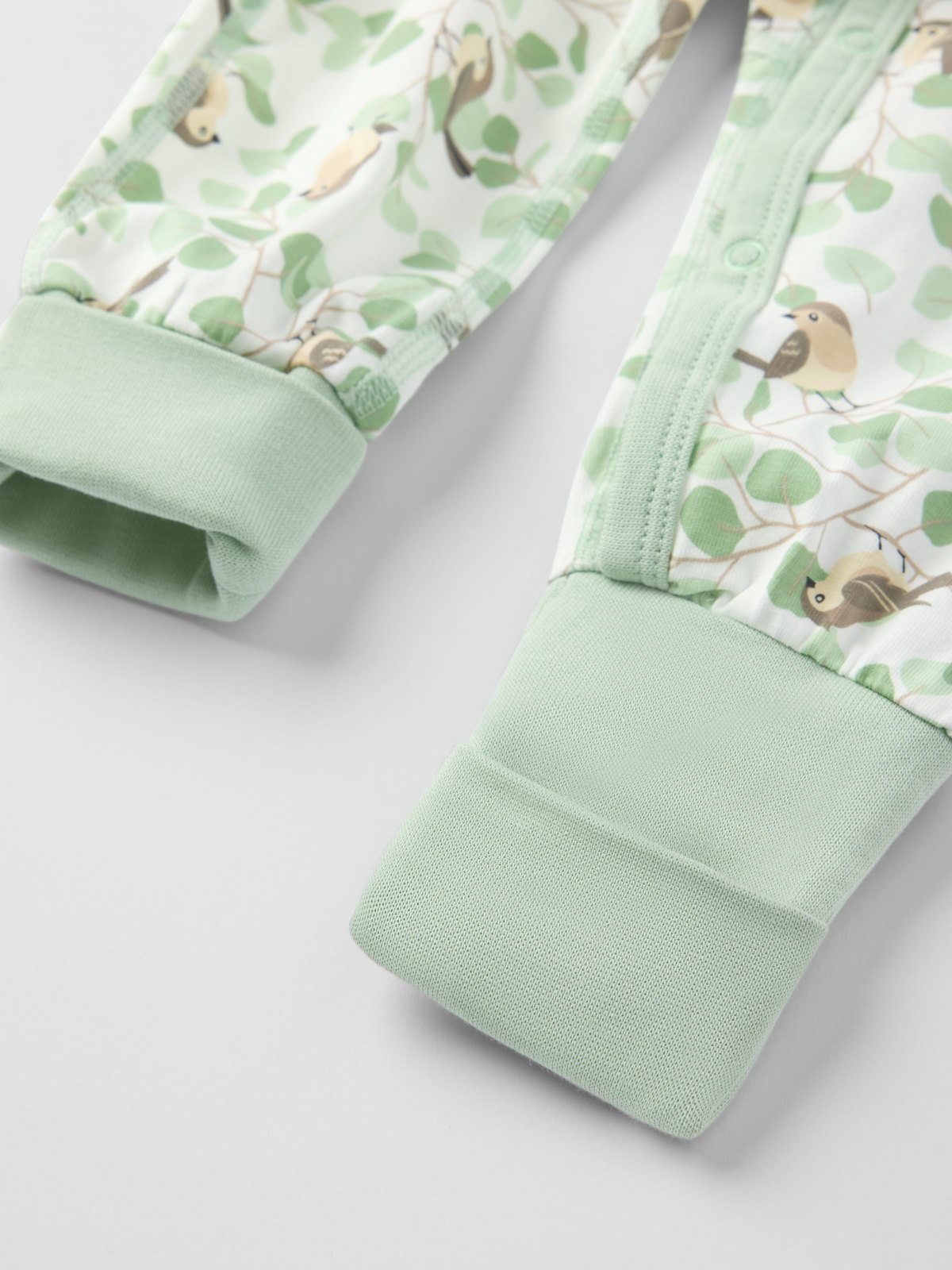 Pehmeä ja kaunis kietaisuhaalari luomupuuvillaa – täydellinen kotoiluun! Haalari erittäin pehmeät ja litteät saumat, jotka eivät hankaa herkkää ihoa. Hihan- ja lahkeensuissa taitettavat resorit. Taitettavat hihansuut suojaavat pieniä käsiä kylmyydeltä ja viimalta. Hihojen alla on kaunis nauha, jonka voi solmia rusetiksi.