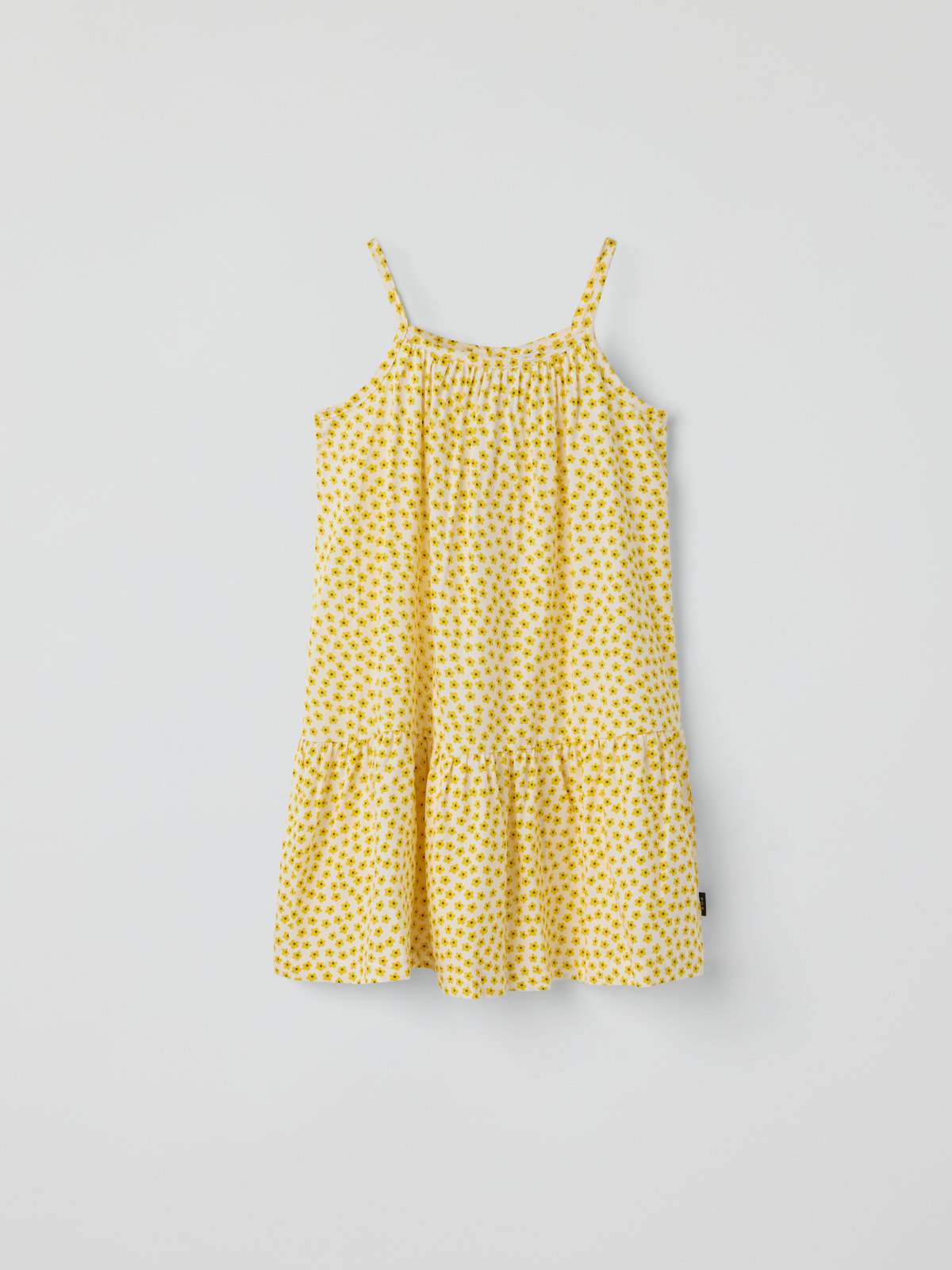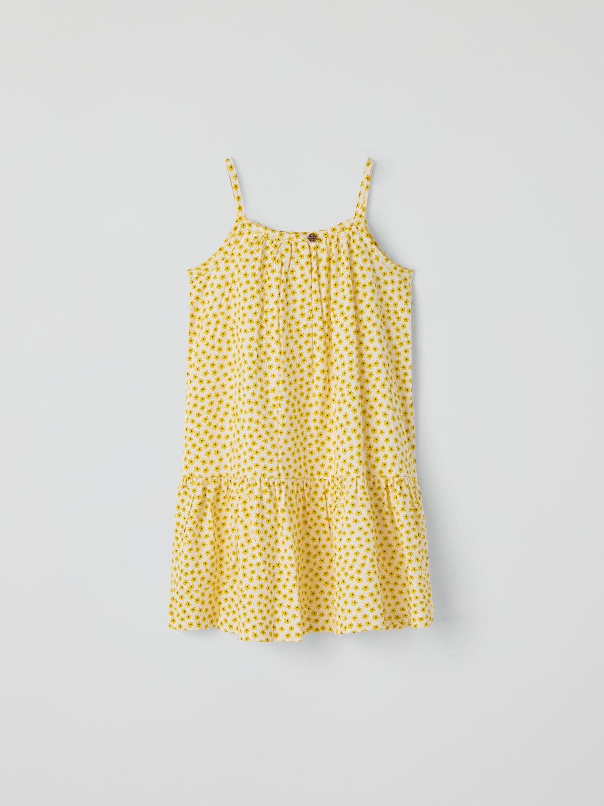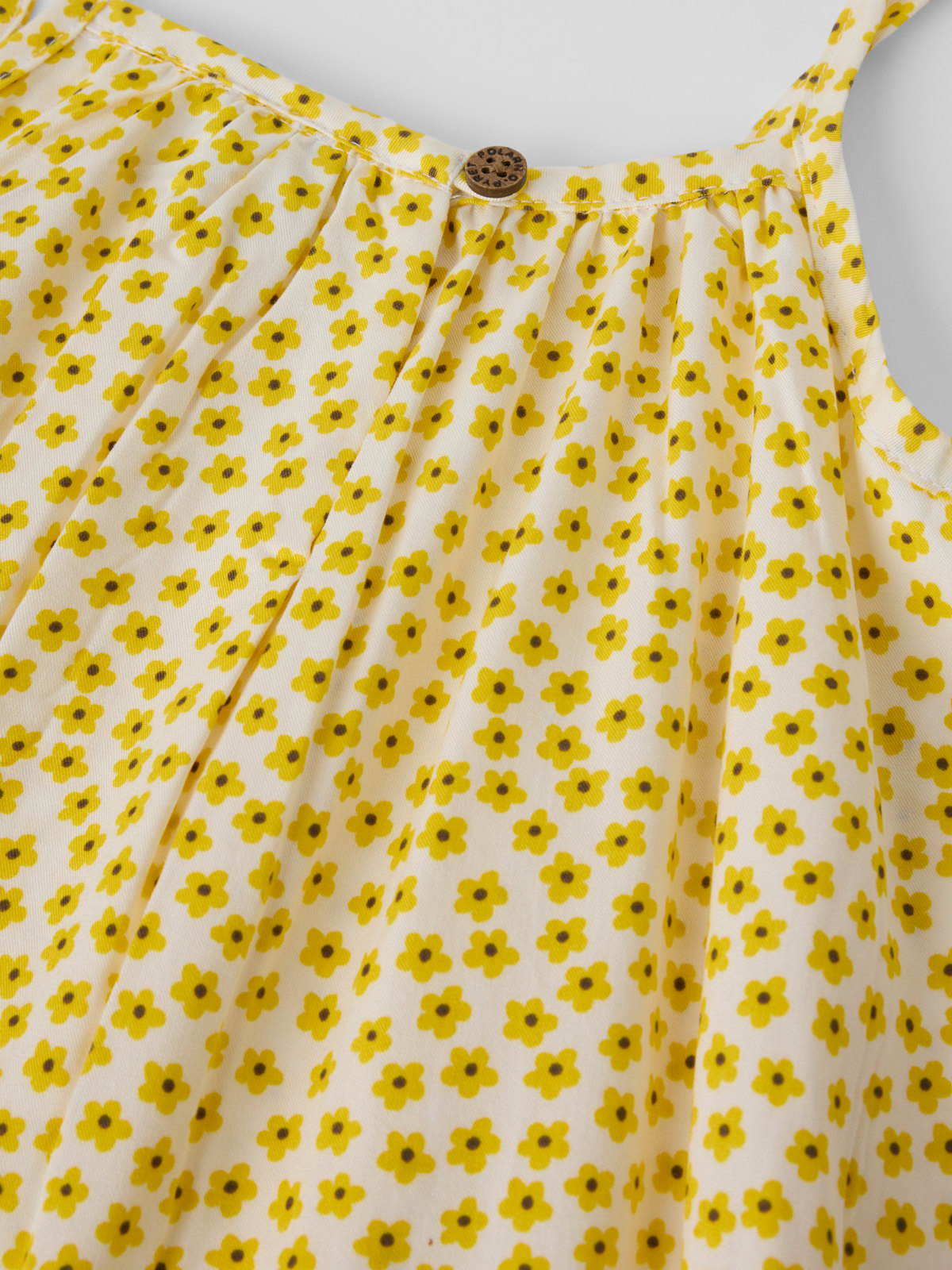 Kevyt ja ilmava mekko ohuesta Ecovero™ Viscose -trikoosta – täydellinen lämpimiin päiviin! Mekossa on kapeat olkaimet ja rypytetty helma. Sopii ihanasti sisarusten yhteensovittamiseen! blommig