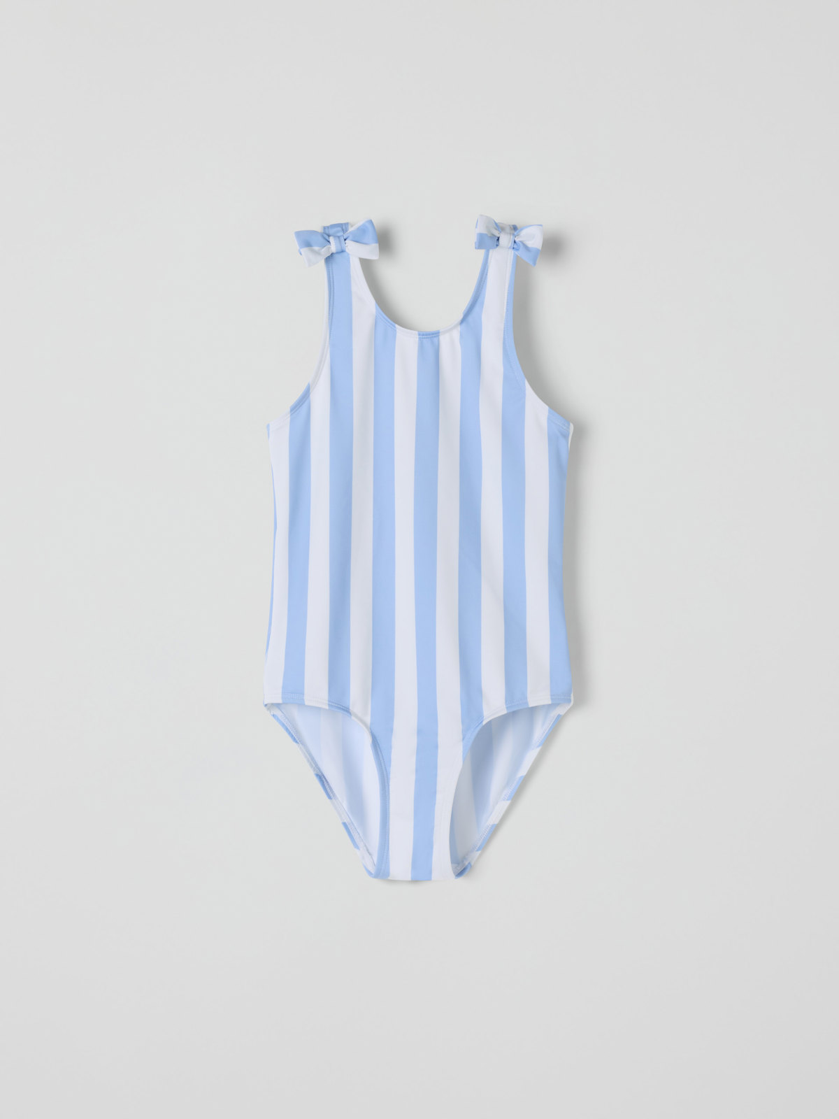 Raidallinen uimapuku, joka on valmistettu pehmeästä ja mukavasta kierrätetystä polyesteristä. Uimapuvussa on suuri kirsikkakuvio edessä ja koristeelliset solmut olkaimissa. Siinä on vuorattu haaraosa ja ommeltu erityisen pehmeillä saumoilla, jotka eivät hankaa.