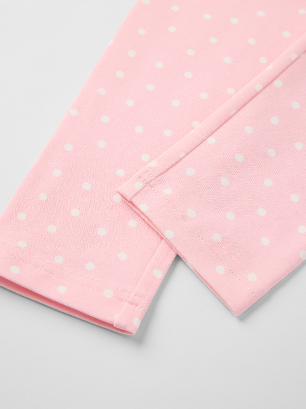Pilkulliset leggingsit pehmeästä luomupuuvillatrikoosta – yksi suosituimmista tuotteistamme! Vyötäröä voi säätää reikäkuminauhalla.