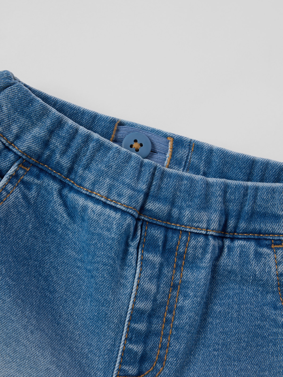 Pue helposti päälle pehmeät ja joustavat denimhousut – täydelliset kevätsäähän! Housuissa on joustava vyötärö, kapenevat lahkeet ja sivutaskut. denim