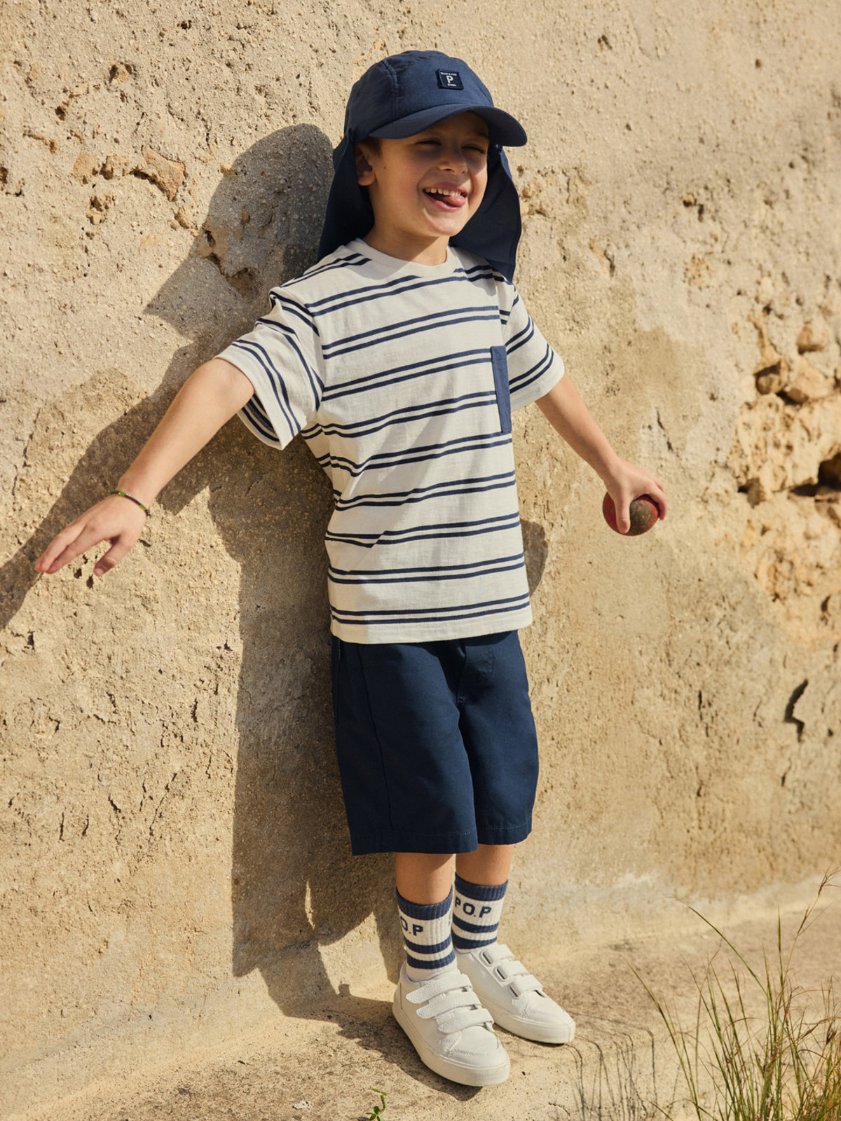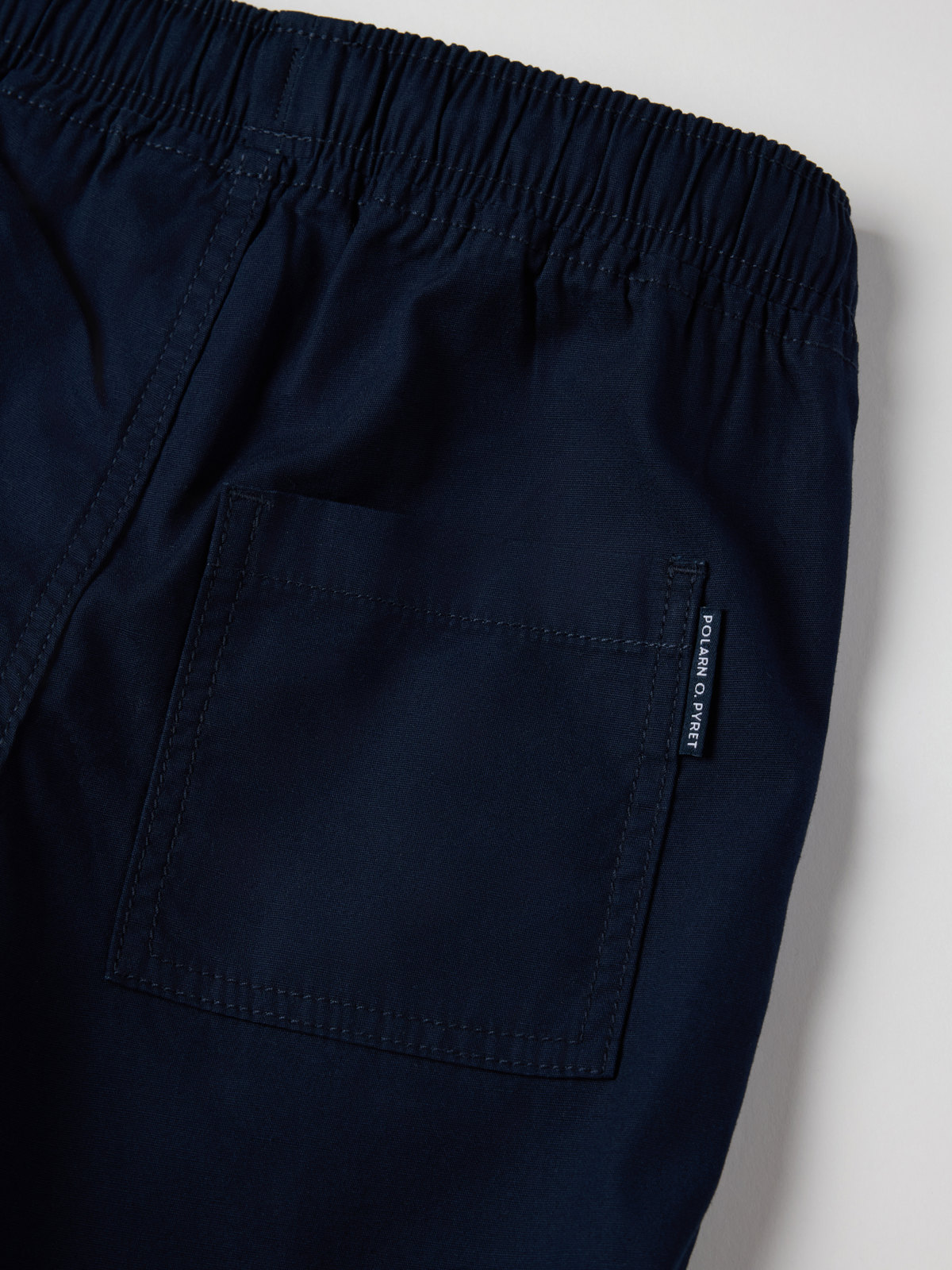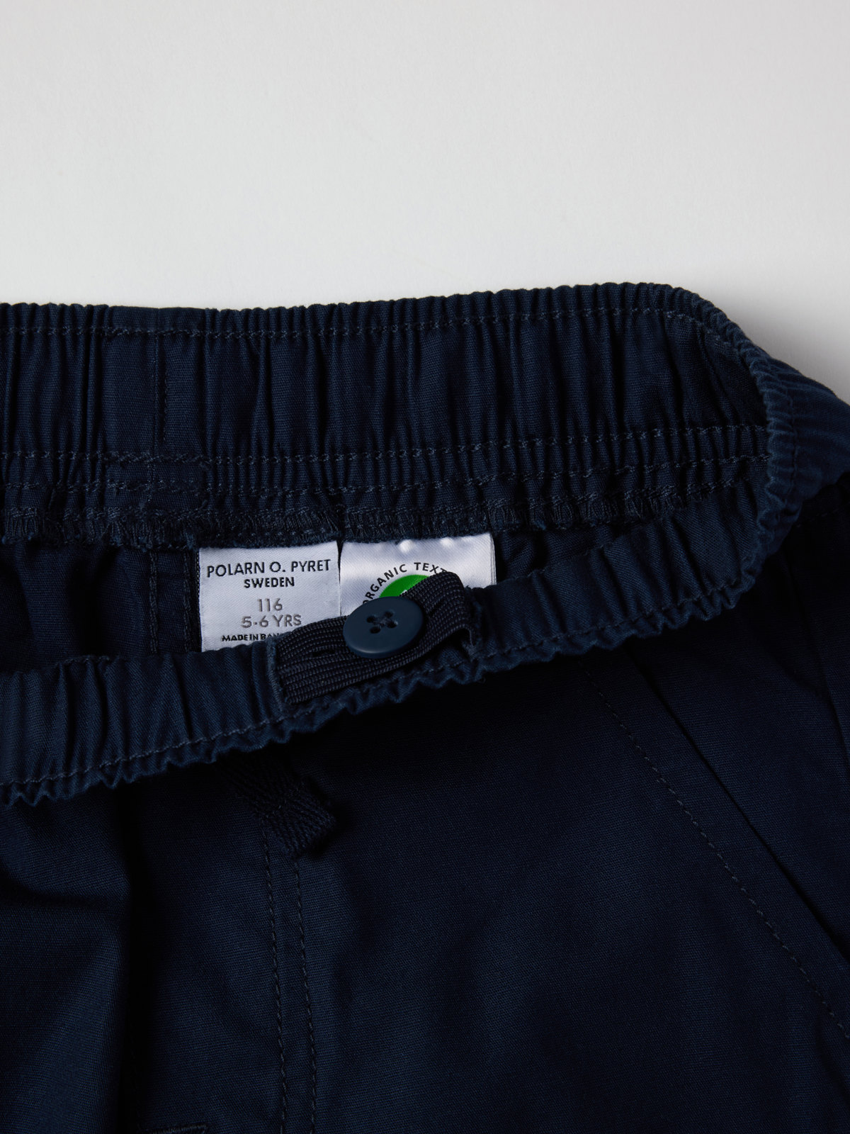 Yksiväriset shortsit luomupuuvillaa – ohuet ja kauniit sekä arkeen että juhlaan. Joustava vyötärö, jota voi säätää kiristysnauhalla. Kaksi etutaskua.