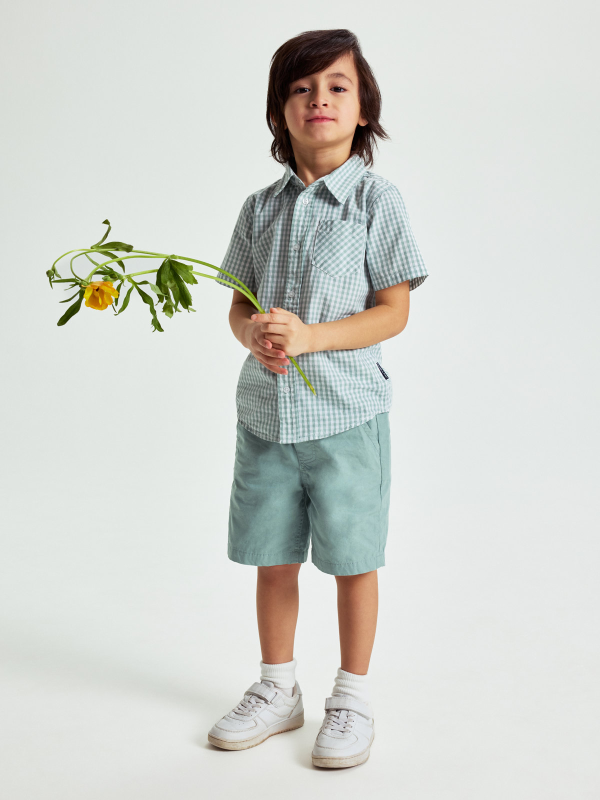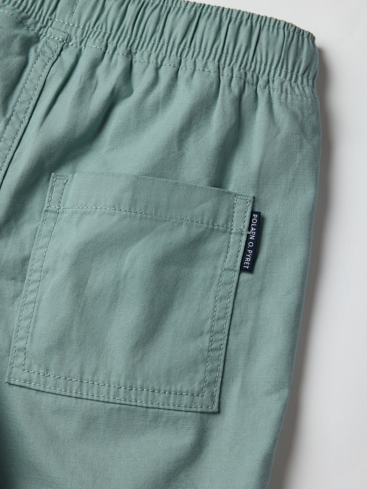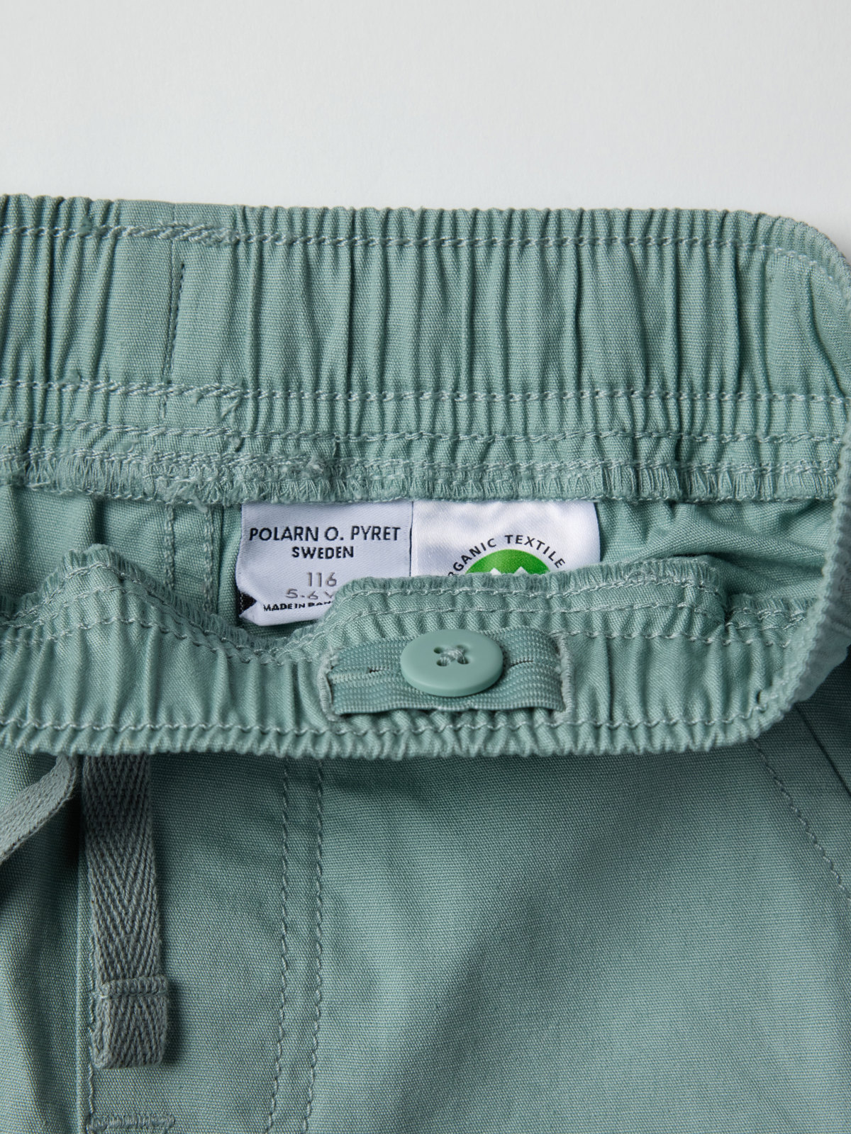 Yksiväriset shortsit luomupuuvillaa – ohuet ja kauniit sekä arkeen että juhlaan. Joustava vyötärö, jota voi säätää kiristysnauhalla. Kaksi etutaskua.